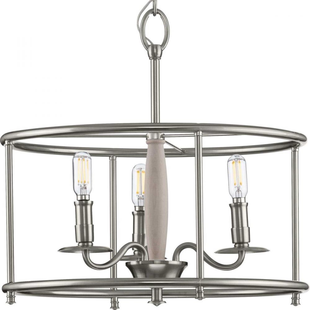 This Versatile Semi-Flush Convertible From The Durrell Collection Will Easily Find A Home In A Variety Of Settings In Need Of Generous Illumination. A Round Open-Cage Frame Coated In A Farmhouse-Style Brushed Nickel Highlights The Light Fixture’S Rustic Demeanor. Inside The Frame Nestle Light Bases Reminiscent Of Vintage Candlesticks On Gently Curving Metal Arms. A Wooden Column At The Ceiling Light’S Center Is Coated In A Cerused White Finish And Creates A Mixed-Element Aesthetic.