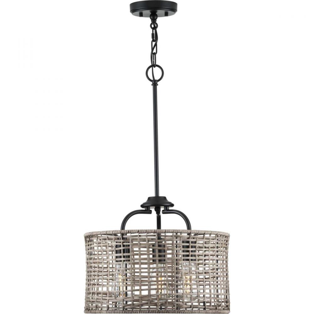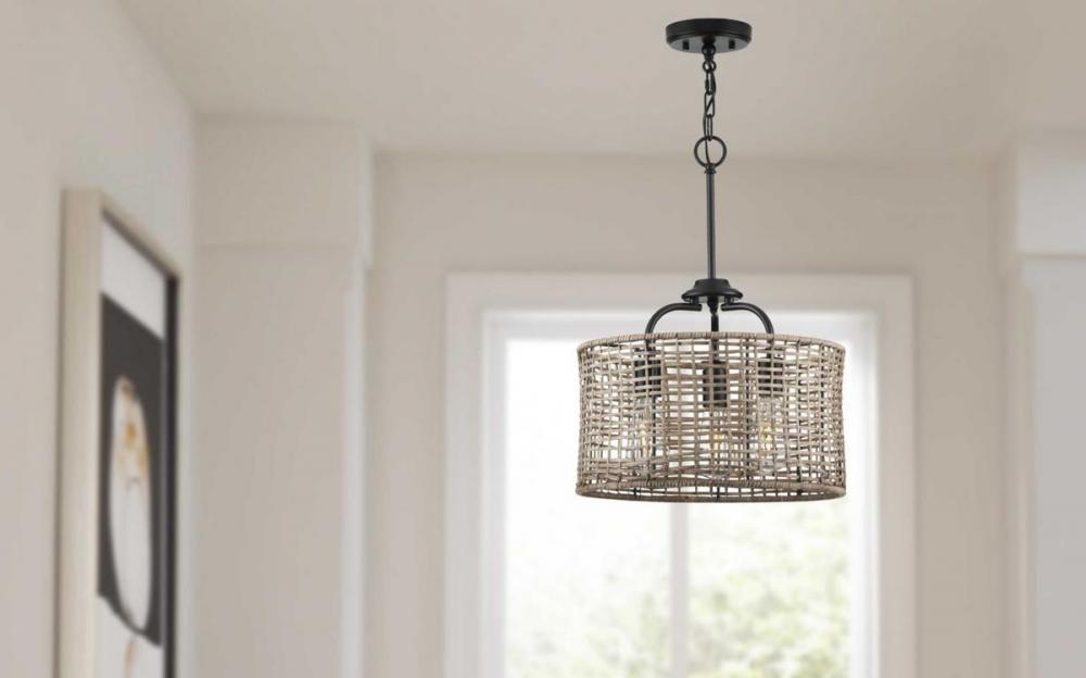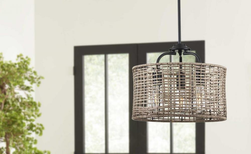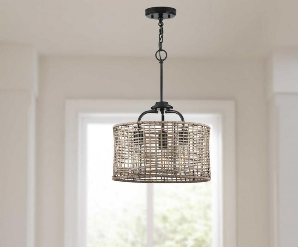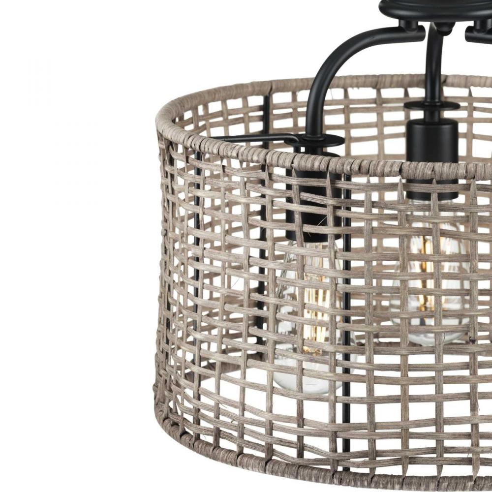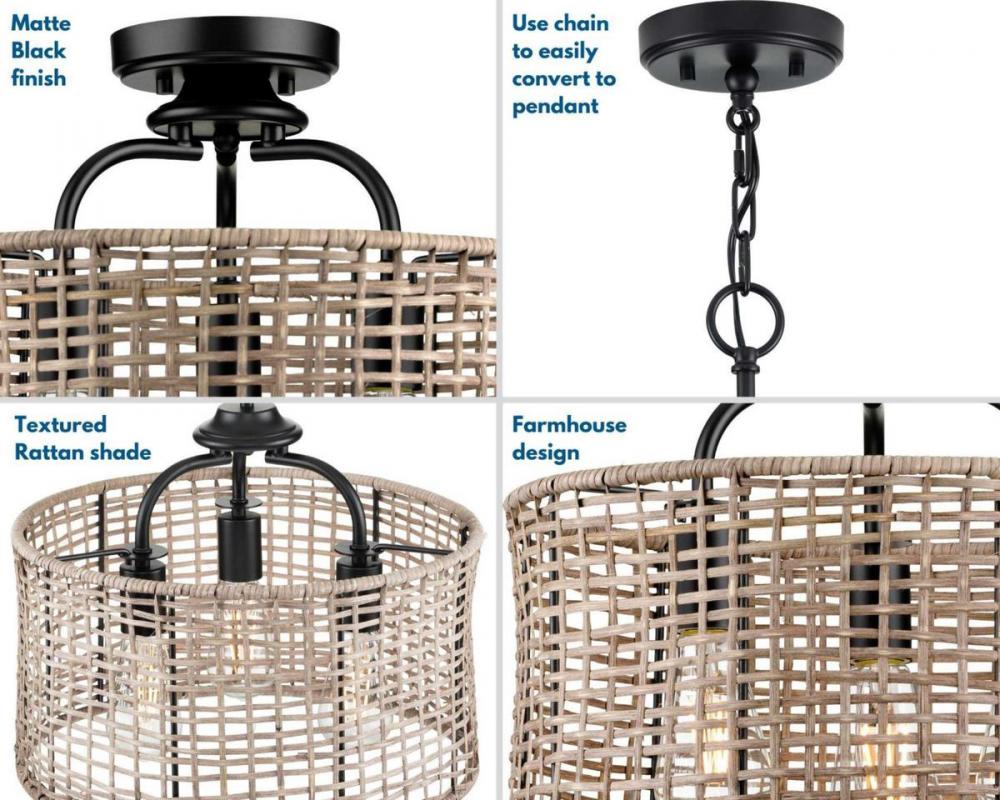 Gather under the organic glow of the Lavelle Collection 3-Light Natural Rattan Textured Black Global Semi-Flush Mount Convertible Ceiling Light. Light sources glow from between the openings of a natural rattan shade that creates an earthy design sure to add an organic touch to the living space it calls home. The smooth, stem, curved arms, and rounded light bases are coated in a textured black finish that complements the shade and adds a pinch of industrial character.