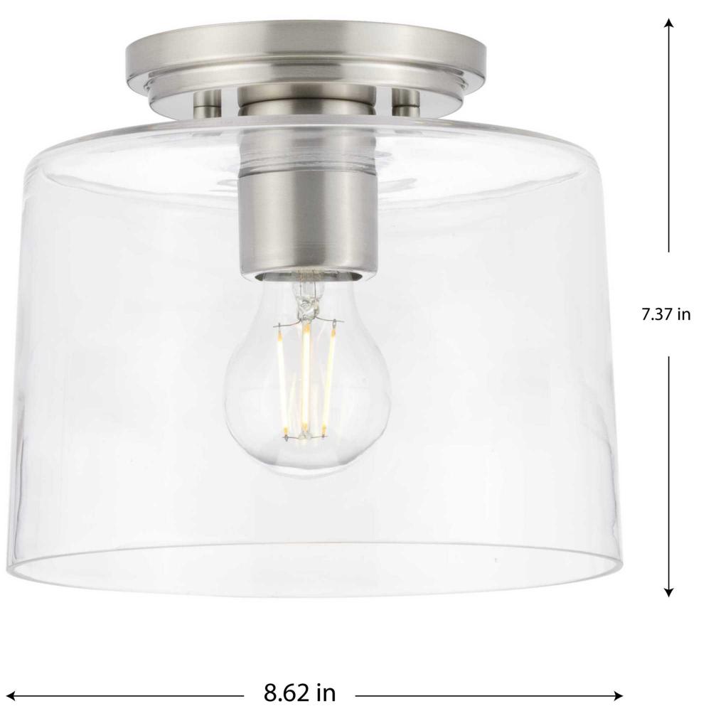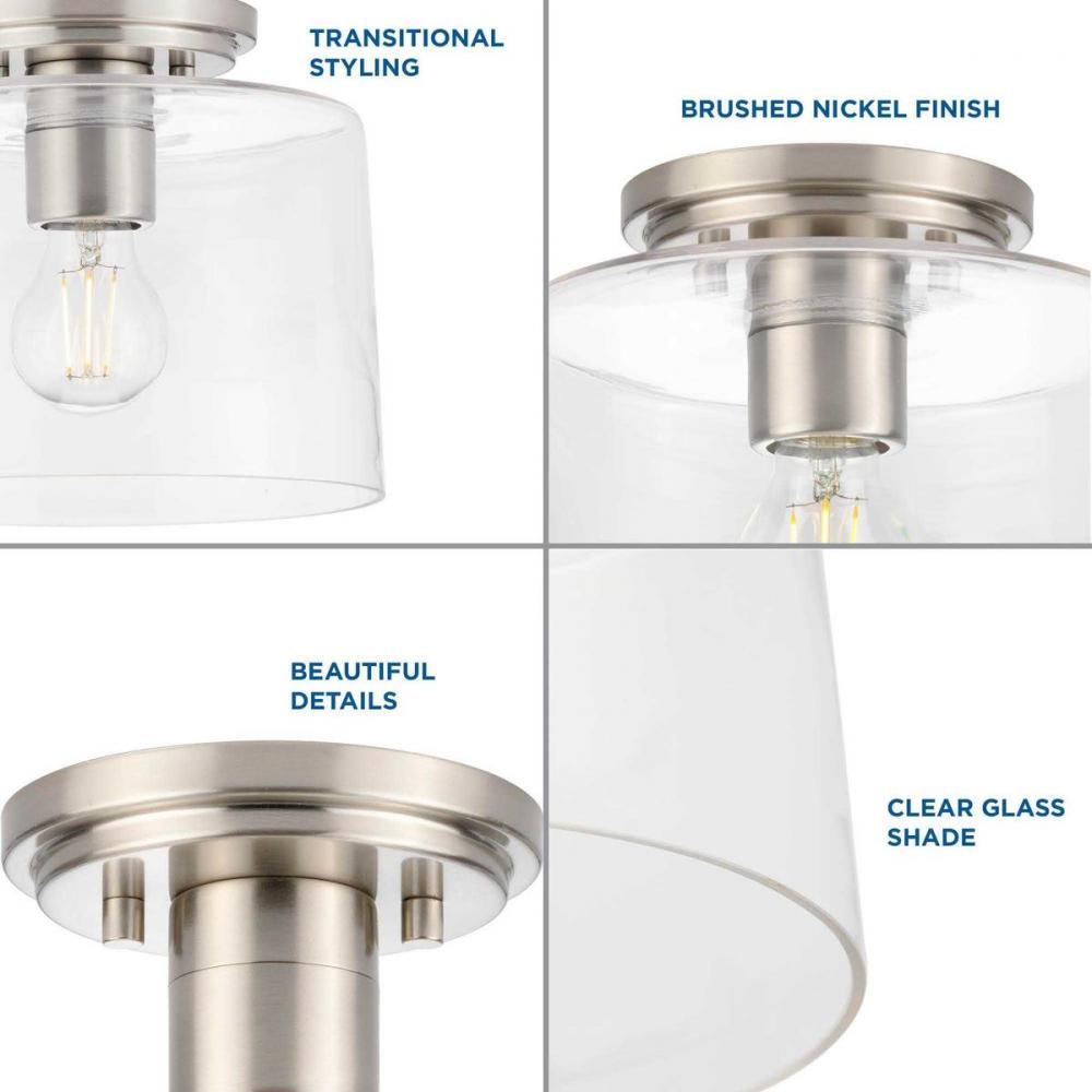 Ideal for a hall, kitchen, bathroom, or foyer;Perfect for new traditional, transitional, and modern farmhouse style settings;Beautiful brushed nickel finish;Clear glass shade;Includes installation instructions and mounting hardware;Use 1 medium base base b