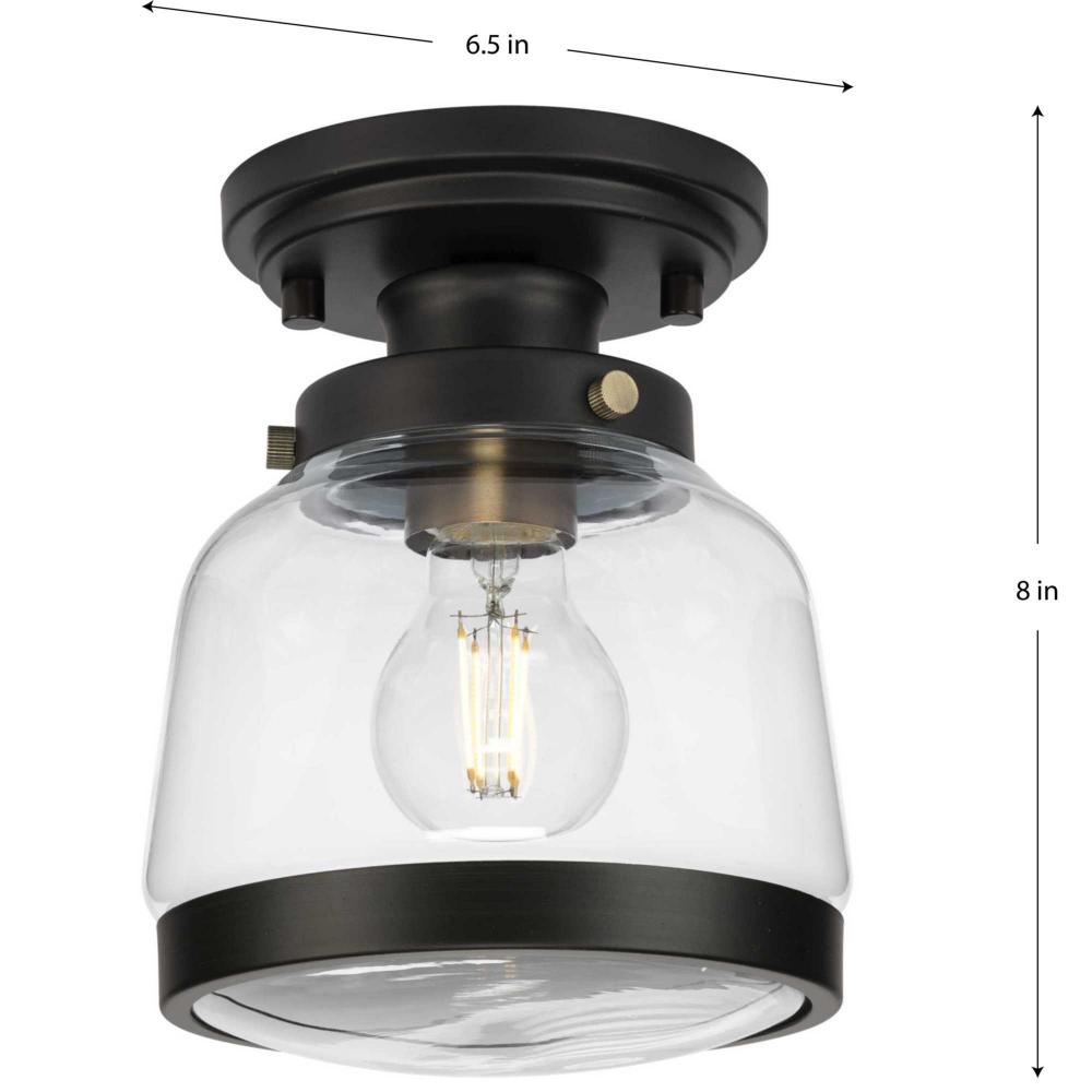 The Judson Collection features a timeless clear schoolhouse-style globe that is the ifeal complement for hallways, foyers, bathrooms and bedrooms;Distinctive metal fittings add character to farmhouse, transitional and coastal settings.;Coated in a mellow a