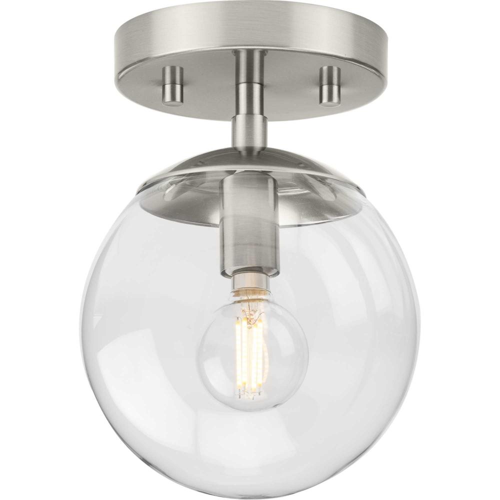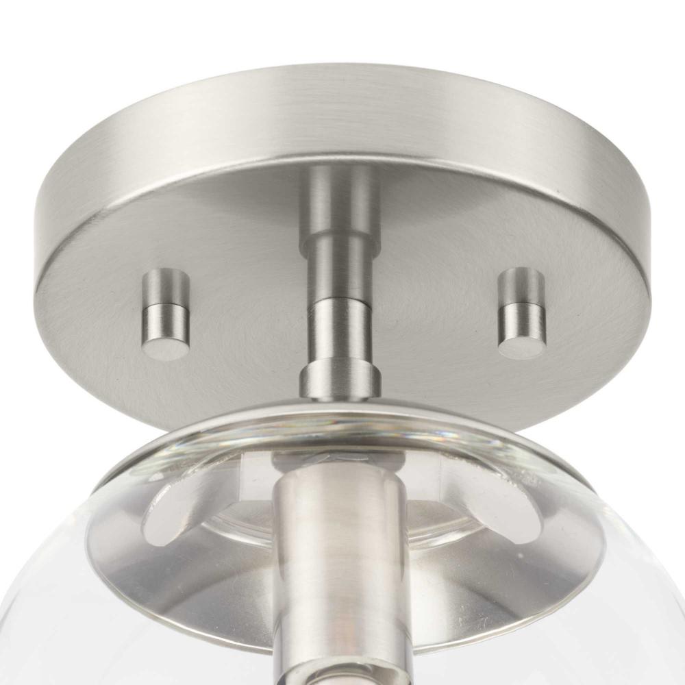 Long lines ending in a clear glass globe shade defines the Atwell Close-to-Ceiling fixture's modern aesthetic. One central stem is capped by clear glass, creating bright illumination from the light source glowing within. Atwell fits beautifully into mid-century modern and contemporary settings, delivering ambient illumination to bedrooms, halls and foyers and kitchens.