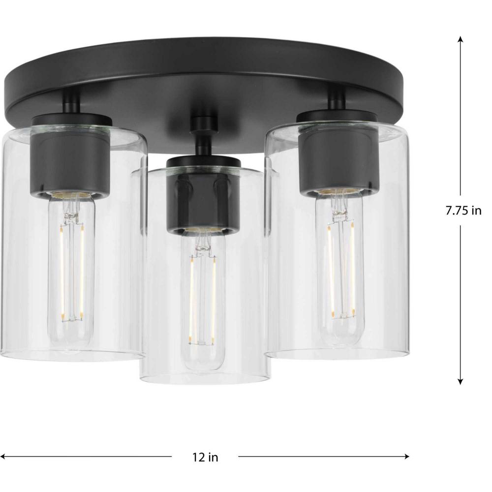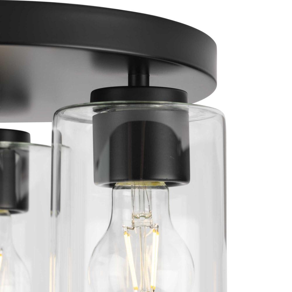 The Cofield Flush Mount features a slender, clean design that showcases understated elegance. A simple round canopy suspends cylindrical glass shades, providing contemporary style to mid-century modern and transitional settings, delivering ambient illumination to hallways, foyers, bedrooms and laundry rooms.