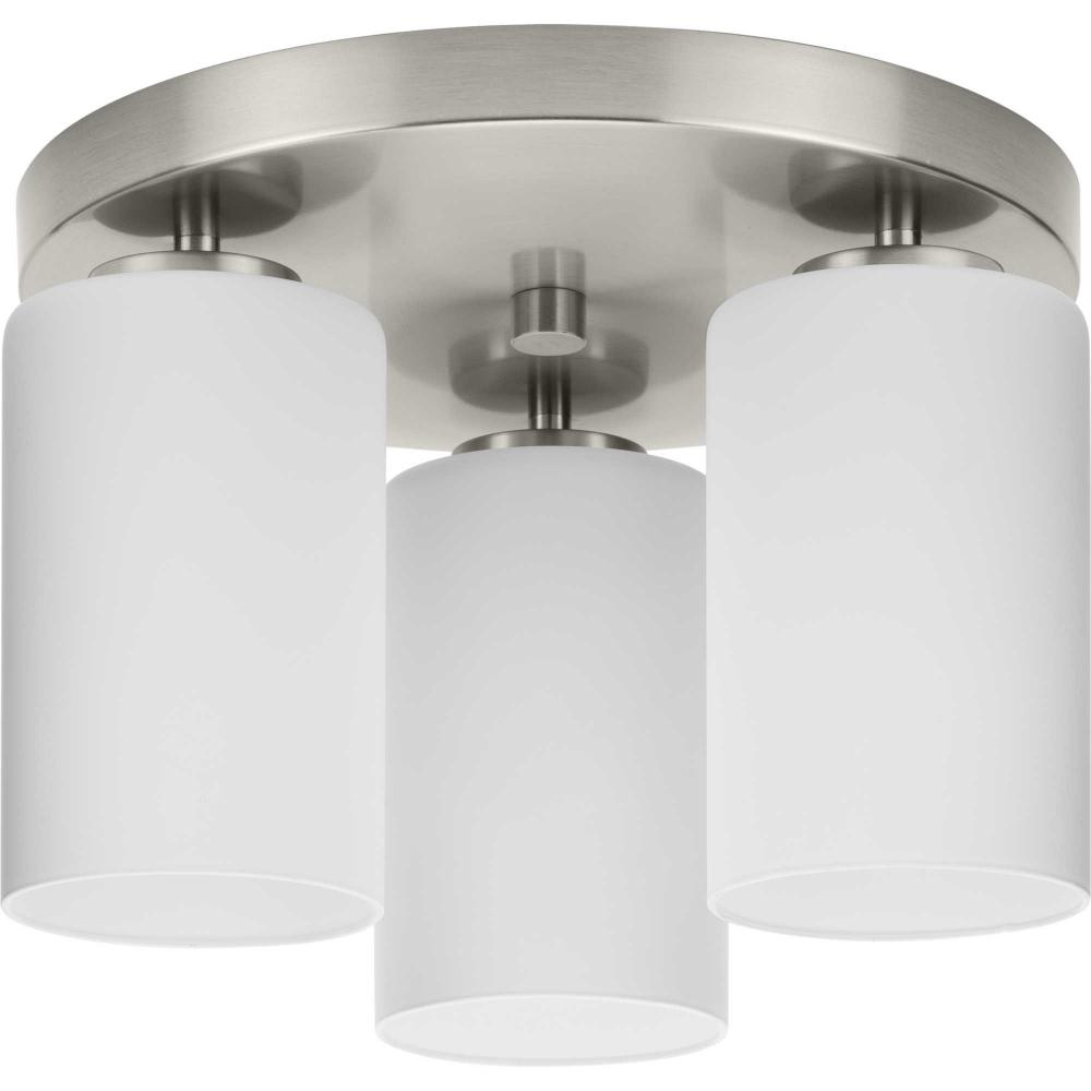 The Cofield Flush Mount features a slender, clean design that showcases understated elegance. A simple round canopy suspends cylindrical glass shades, providing contemporary style to mid-century modern and transitional settings, delivering ambient illumination to hallways, foyers, bedrooms and laundry rooms.