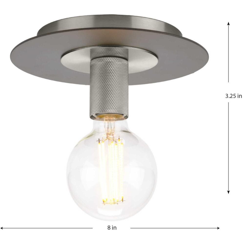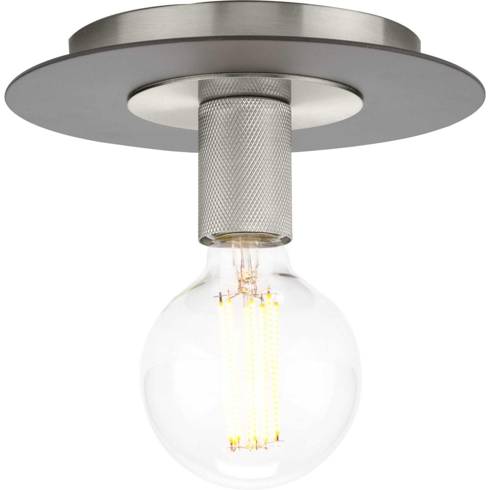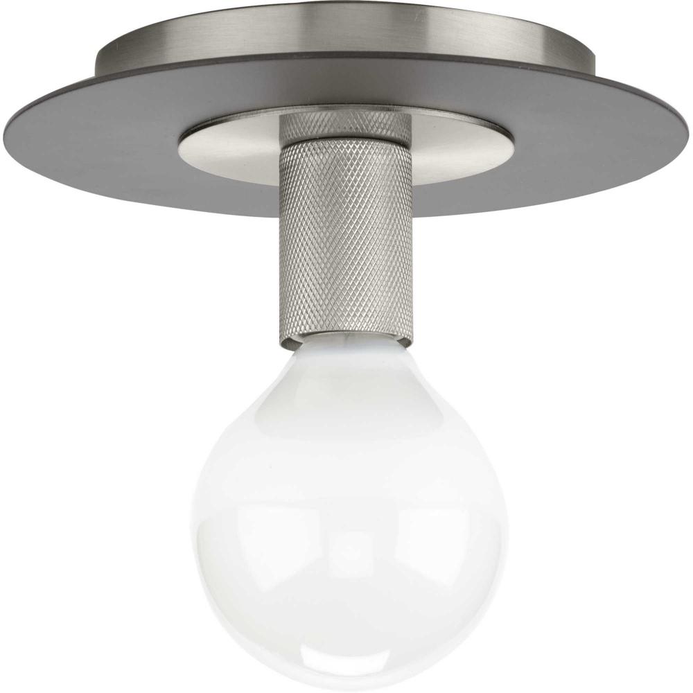 An intriguing flat disc shade forms the basis of the Trimble Collection, whose mid-century modern inspiration is perfect for open spaces in mid-century modern and luxe industrial settings. A two-toned finish on the shade features subtle brushed nickel and crisp graphite, plus a knurled metal lamp socket is coated in brushed nickel providing additional rich visual interest. Use vintage-style bulbs to add modern appeal and to cast crisp illumination to kitchens, bedrooms, hallways and foyers.