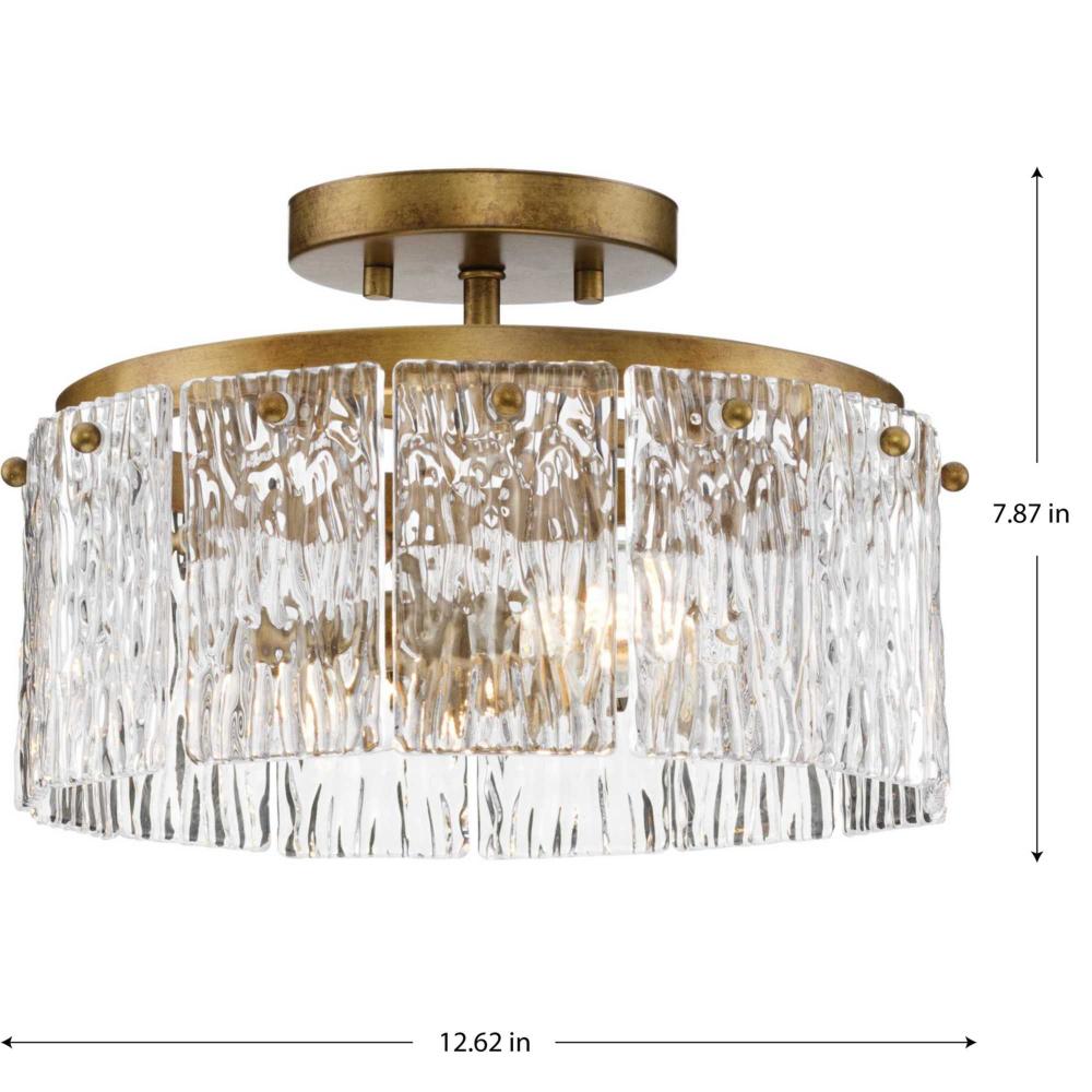 Add luxury and glamour to your home with the elegant Chevall Collection. The Semi-Flush Mount Light combines a layer of distinctive artisanal glass with a richly burnished, Gold Ombre frame. Glimmering illumination creates a sparkling ambiance that fills the room. This fixture is part of the Progress Lighting Design Series, a lighting collection offering fashionable styles and affordable luxury lighting for the home.
