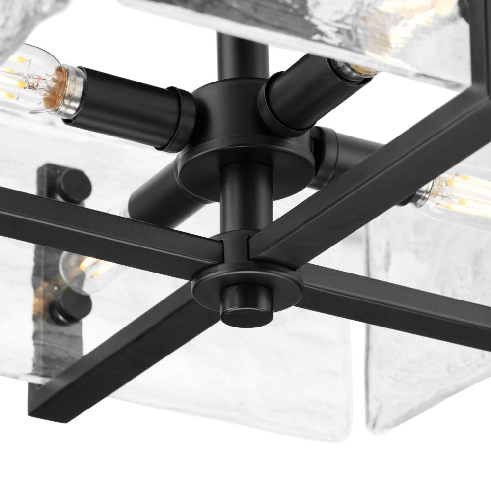 Indulge your artistic sensibility with luxurious lighting from the Rivera Collection. Softly filtered illumination through an icy display creates an otherworldly effect. Linear segments in rich, deep black tones frame billets of handcrafted, clear textured glass in a modern craftsman-inspired design.This fixture is part of the Progress Lighting Design Series, a lighting collection offering fashionable styles and affordable luxury lighting for the home.