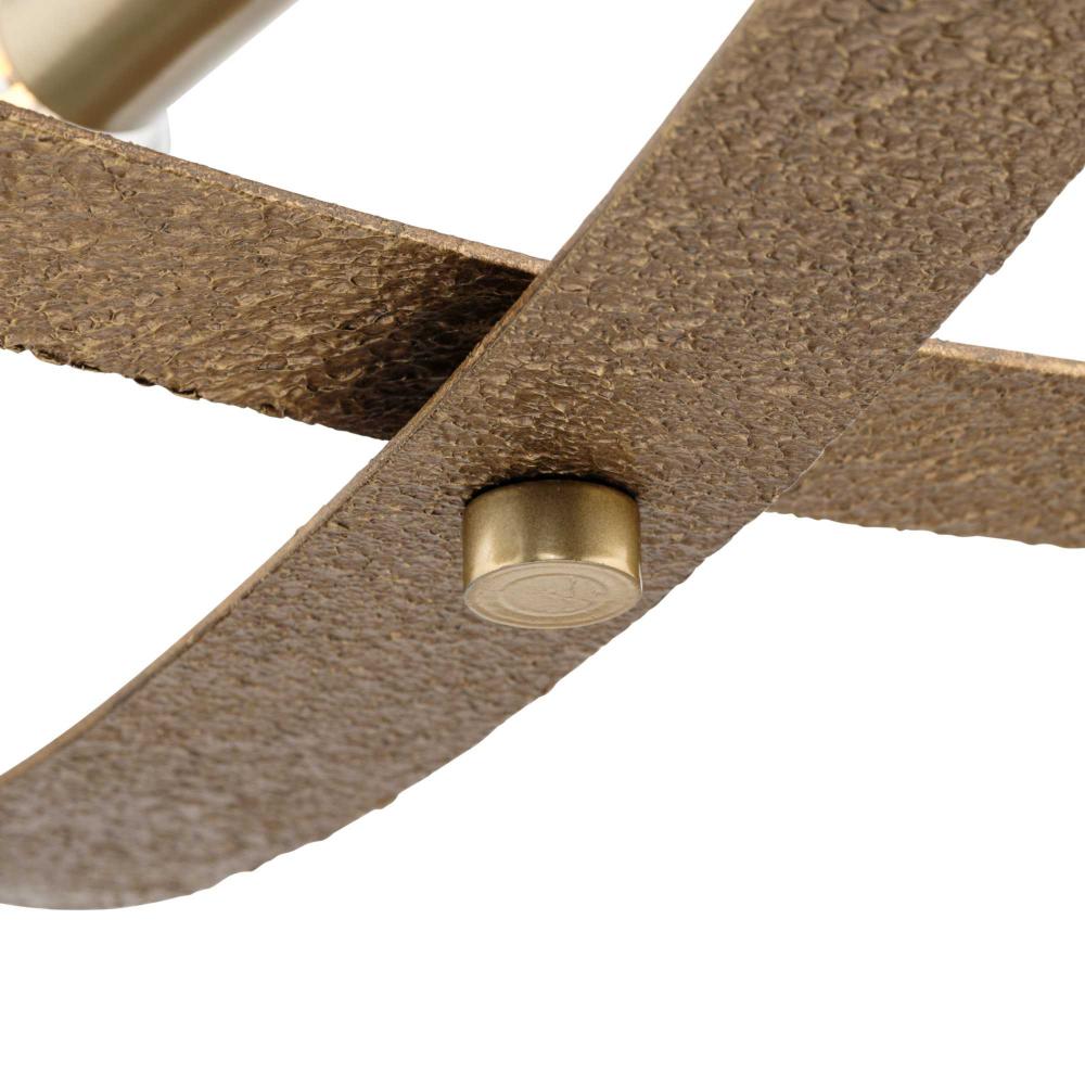 Its rustic frame is finished in a textured Foundry Gold with Soft Gold light cluster