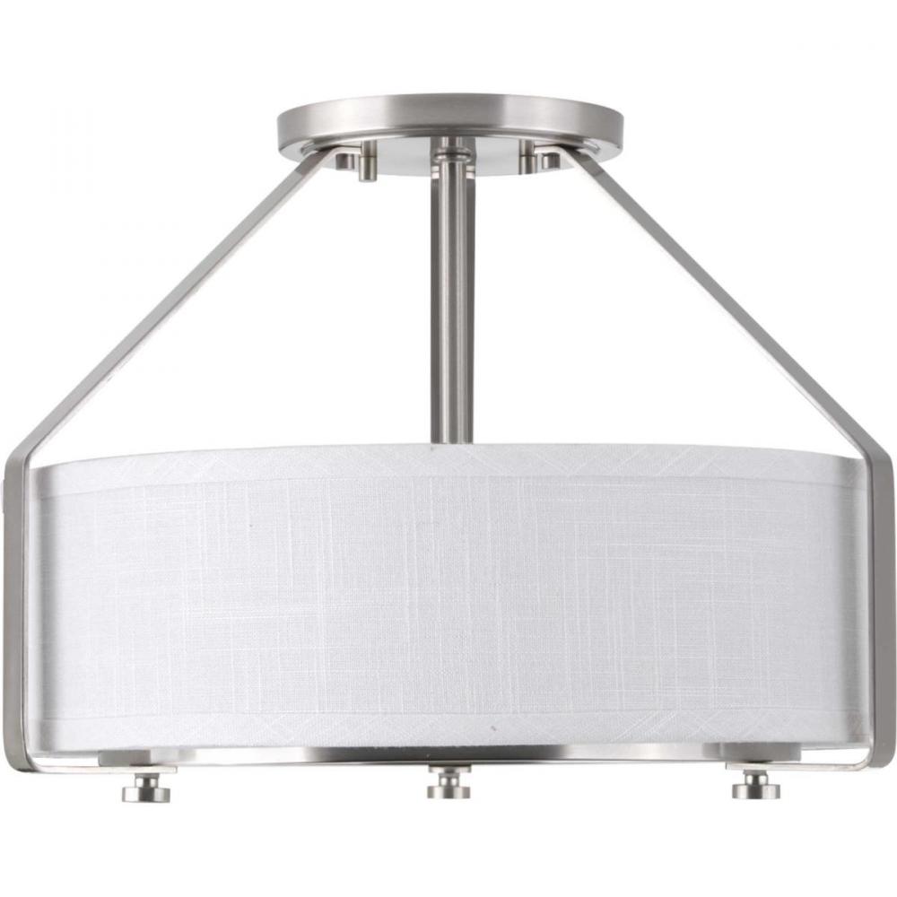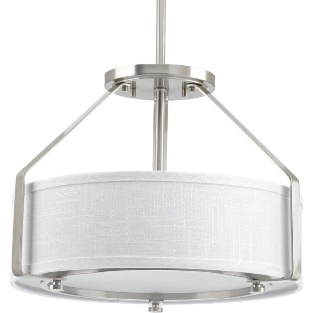 A sleek metal frame supports a low-slung shade.;The frame's proportion to the white linen drum shade evokes a perfect ratio for lighting.;Polished glass diffuser that offers an elegant appeal and is easier to clean.;Offers both fashion and function wit