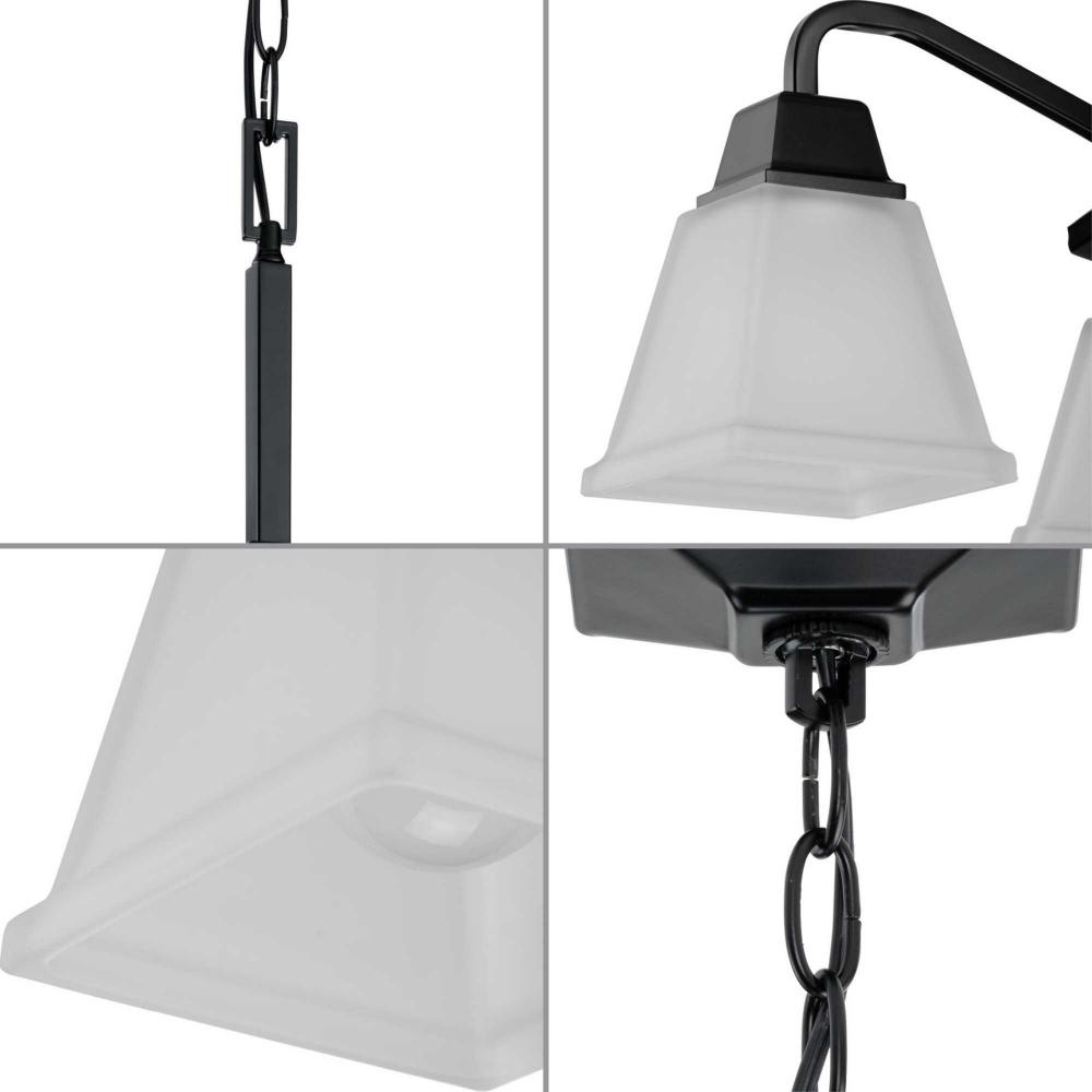 Distinctive forms and clean lines create a smaller-sized chandelier with an enduring style perfect for breakfast nooks;Inspired by craftsman styling, the chandelier has a substantial design ideal for modern farmhouse interiors;Elegant etched glass shades h