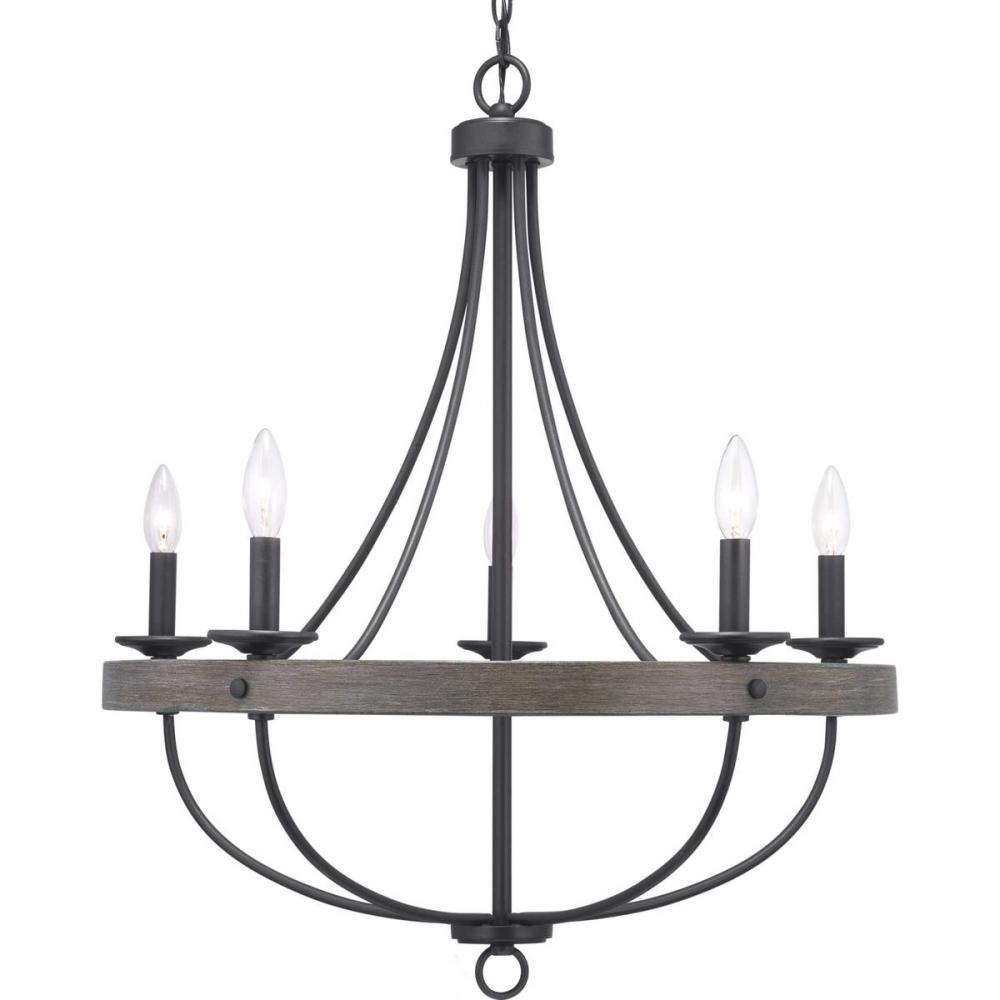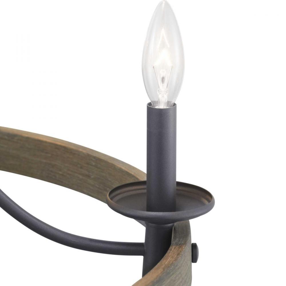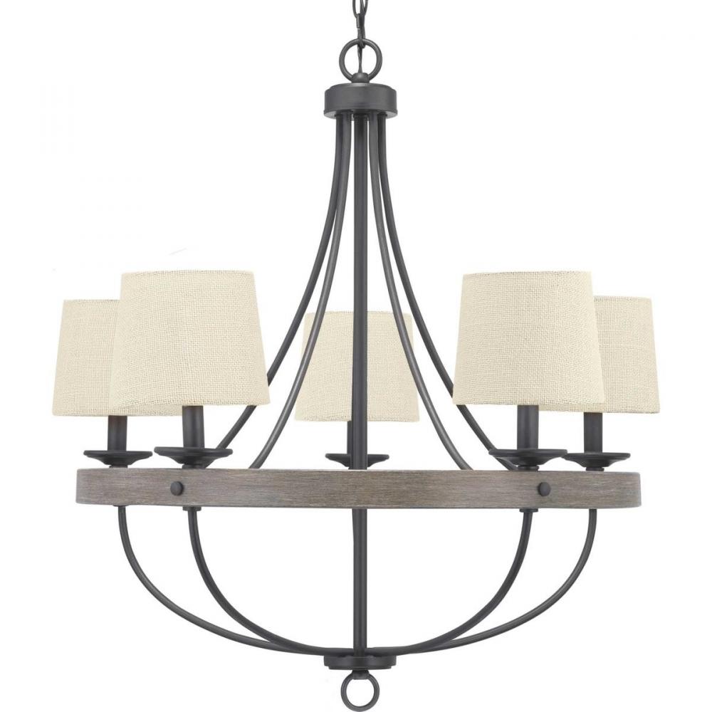 Gulliver’s deftly painted two-toned metal frame reads like a rustic wood finish;Change the look instantly with accessory shades in Natural Burlap (P860041) or Flax Linen (P860042) options;The distinguished five-light chandelier is ideal for foyers, entry