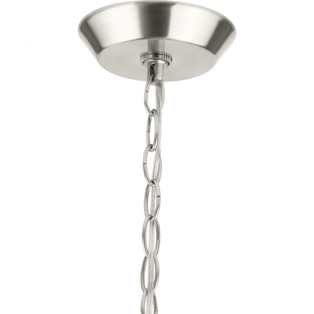 Manifest A Swoon-Worthy Lighting Experience With The Stunning Blend Of The Modern And Traditional Styles In This One-Of-A-Kind Chandelier. Square Tubing With Clean, Sharp Angles Is Coated In A Beautiful Brushed Nickel Finish That Demands Your Attention. Striking Vintage Light Sockets Boast Their Bold Yet Simple Demeanor As They Hold Clear Glass Shades To Complete This Statement-Making Light Fixture.