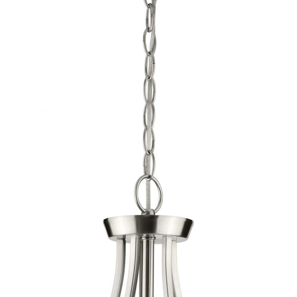 Manifest a swoon-worthy lighting experience with the stunning blend of the modern and traditional styles in this one-of-a-kind chandelier. Square tubing with clean, sharp angles is coated in a beautiful brushed nickel finish that demands your attention. Striking vintage light sockets boast their bold yet simple demeanor as they hold clear glass shades to complete this statement-making light fixture.