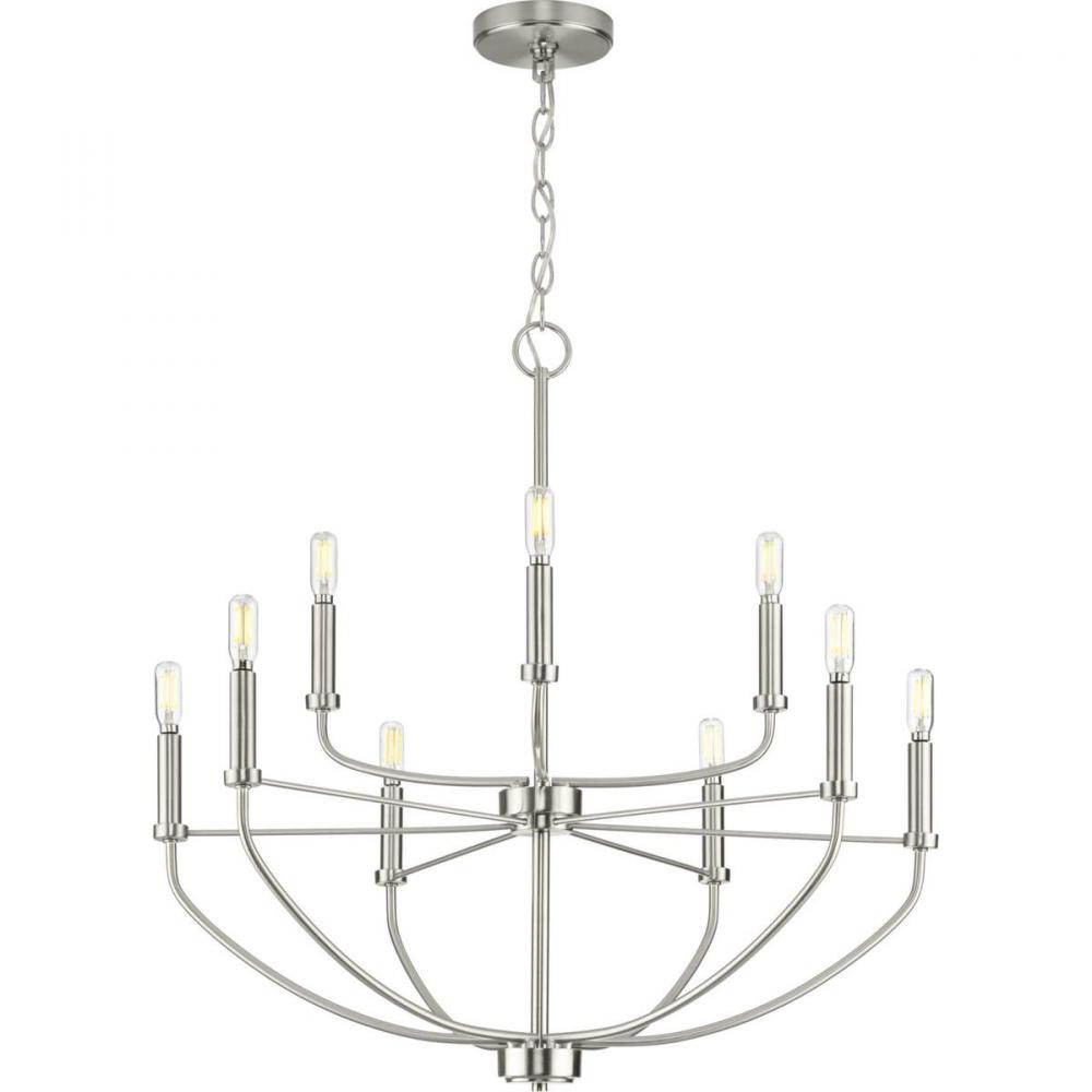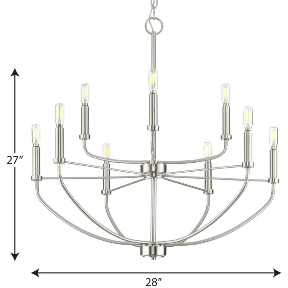 Application: Complement your interiors with the Leyden Collection 9-Light Brushed Nickel Farmhouse Chandelier Light ideal for any dining room, kitchen, bedroom, and living room.;Styles: Perfect for farmhouse, transitional, and coastal style settings.;Finis