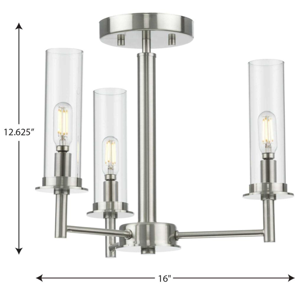 Application: Balance the best of modern and traditional with the Kellwyn Collection 3-Light Brushed Nickel Clear Glass Transitional Semi-Flush Mount Convertible Ceiling Light ideal for any hallway, stairwell, entryway, breakfast nook, or sitting room.;Styl