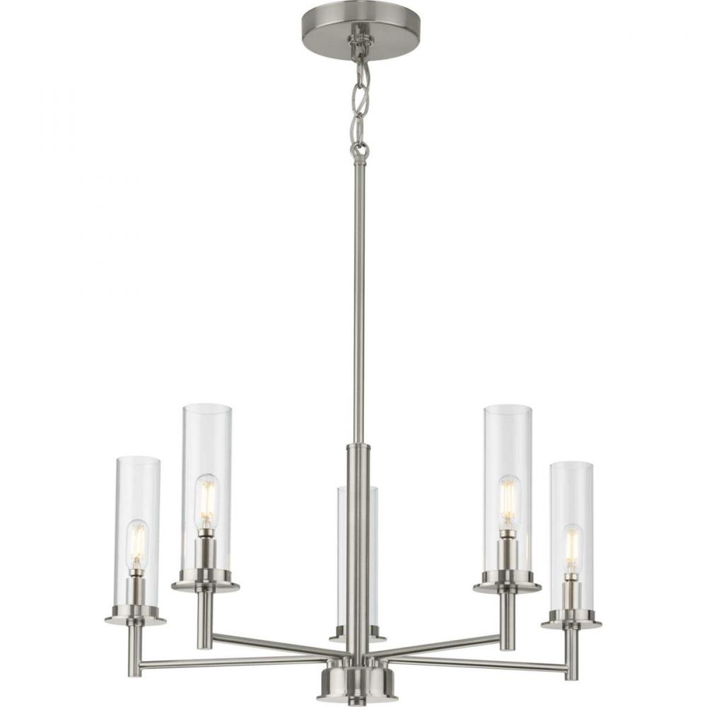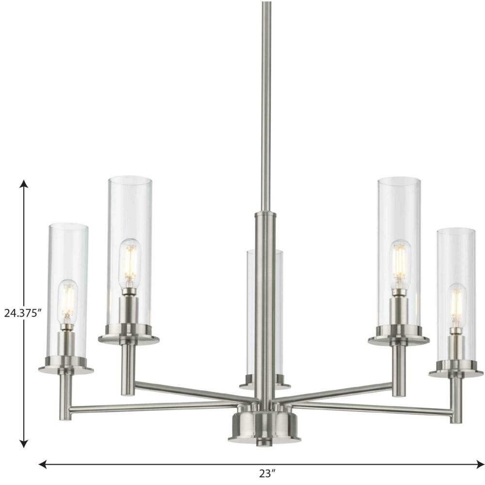 Application: Balance the best of modern and traditional with the Kellwyn Collection 5-Light Brushed Nickel Clear Glass Transitional Chandelier Light ideal for any dining room, kitchen, bedroom, and living room.;Styles: Perfect for contemporary, traditional