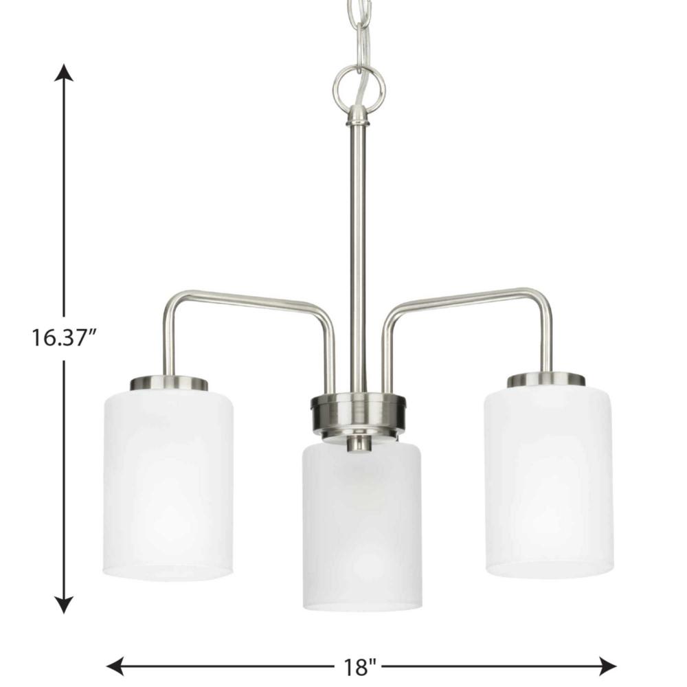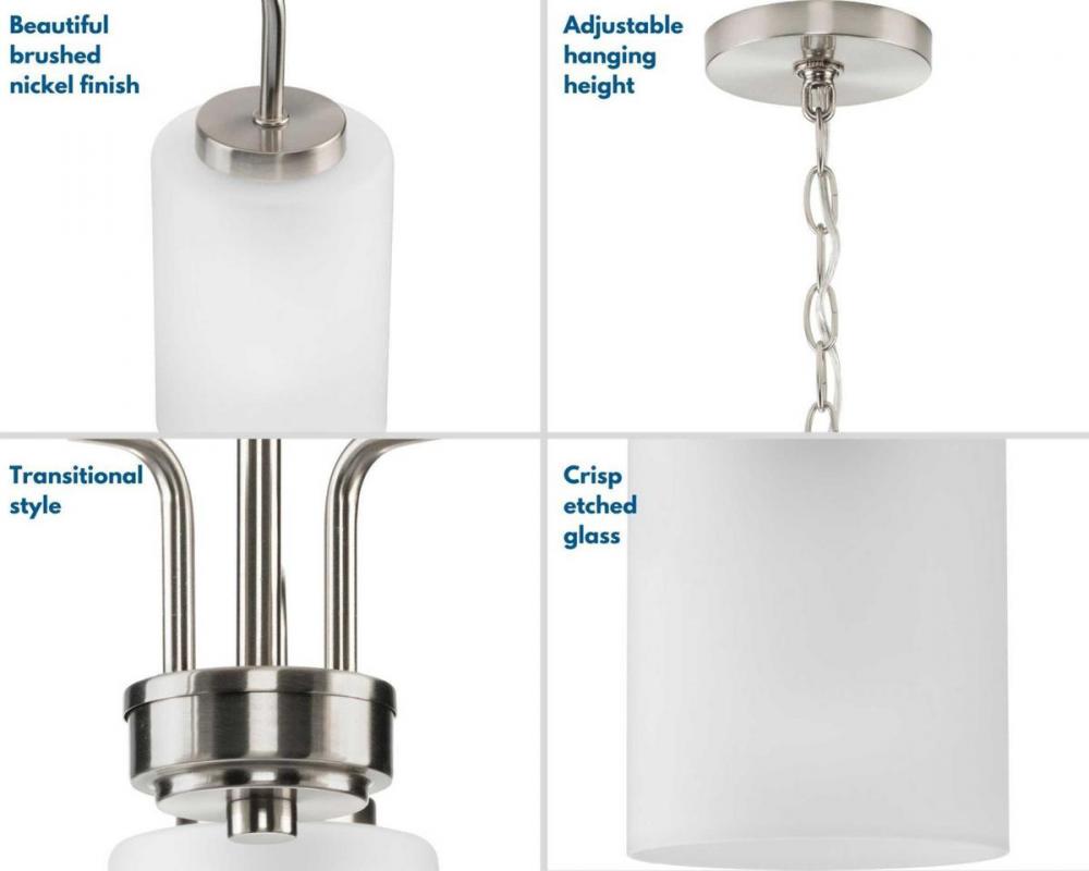 Incorporate a clean, contemporary design with the Merry Collection 3-Light Etched Glass Brushed Nickel Linear Chandelier Light. Light sources glow from within crisp etched glass shades for a generous elegant glow sure to transform your favorite living space into a modern retreat. The clean-lined tubular frame is coated in a beautiful brushed nickel finish that perfectly blends transitional and modern character.