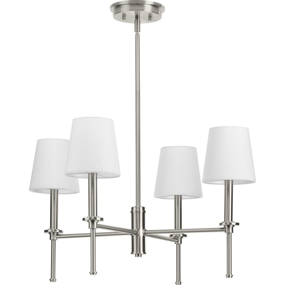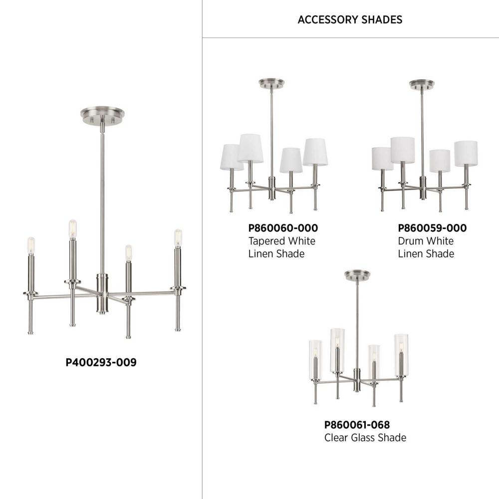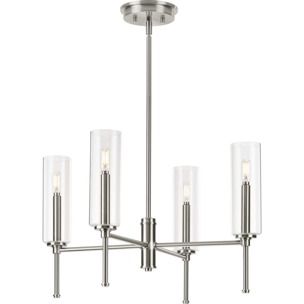 Elara has a clean contemporary design that works across many decor styles. The chandelier features a slender, chic form with stylized finials inspired by a chess pawn for a classically modern look. Select tapered or fabric drum shades, or clear cylindrical glass shades to customize the design and create the perfect amount of even illumination.
