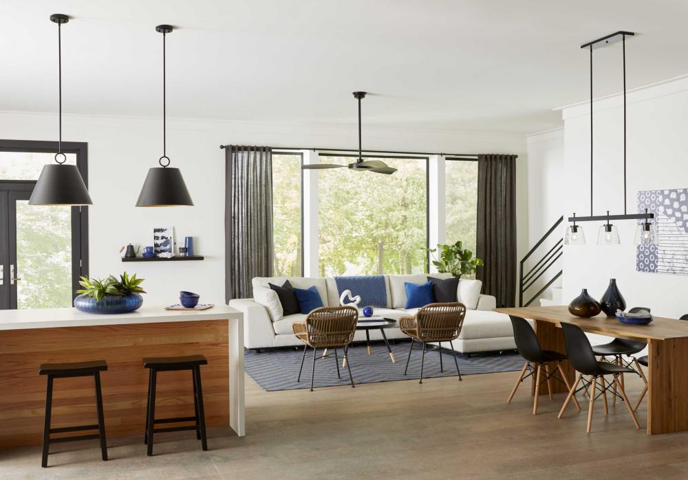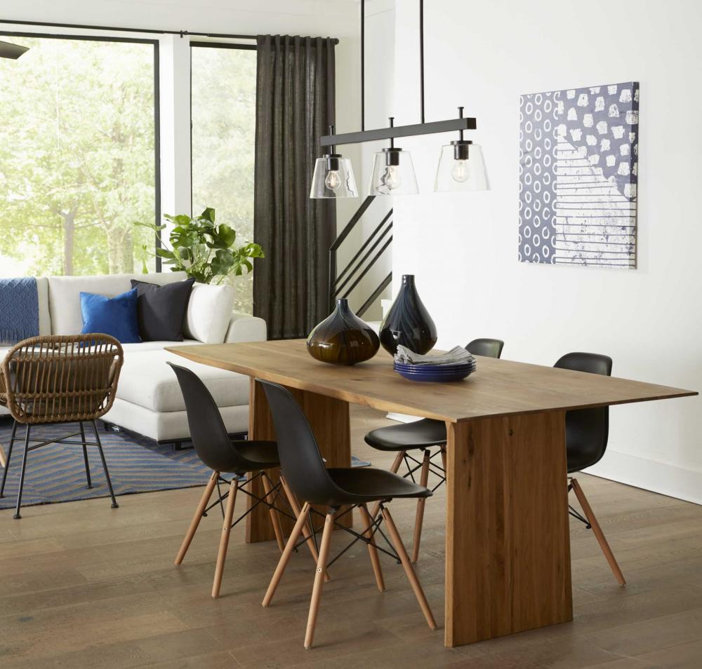 Embrace modern urban style with the Saffert linear chandelier. Clear glass shades punctuate a stoic, beam-style frame. Substantial scale and a bold form make a statement in dining rooms, kitchens and bar areas. Saffert is the perfect choice for new traditional, industrial and luxe interiors.