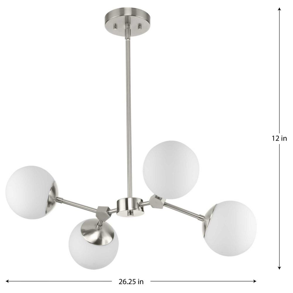 Modern and organic inspirations elegantly meld together in Haas. A bold linear frame branches out to embrace smoothly etched opal glass globes that imbue halls, foyer, kitchens, and breakfast nooks with soft illumination, and fits beautifully into mid-century modern and contemporary settings. This fixture is part of the Progress Lighting Design Series, a lighting collection offering fashionable styles and affordable luxury lighting for the home.