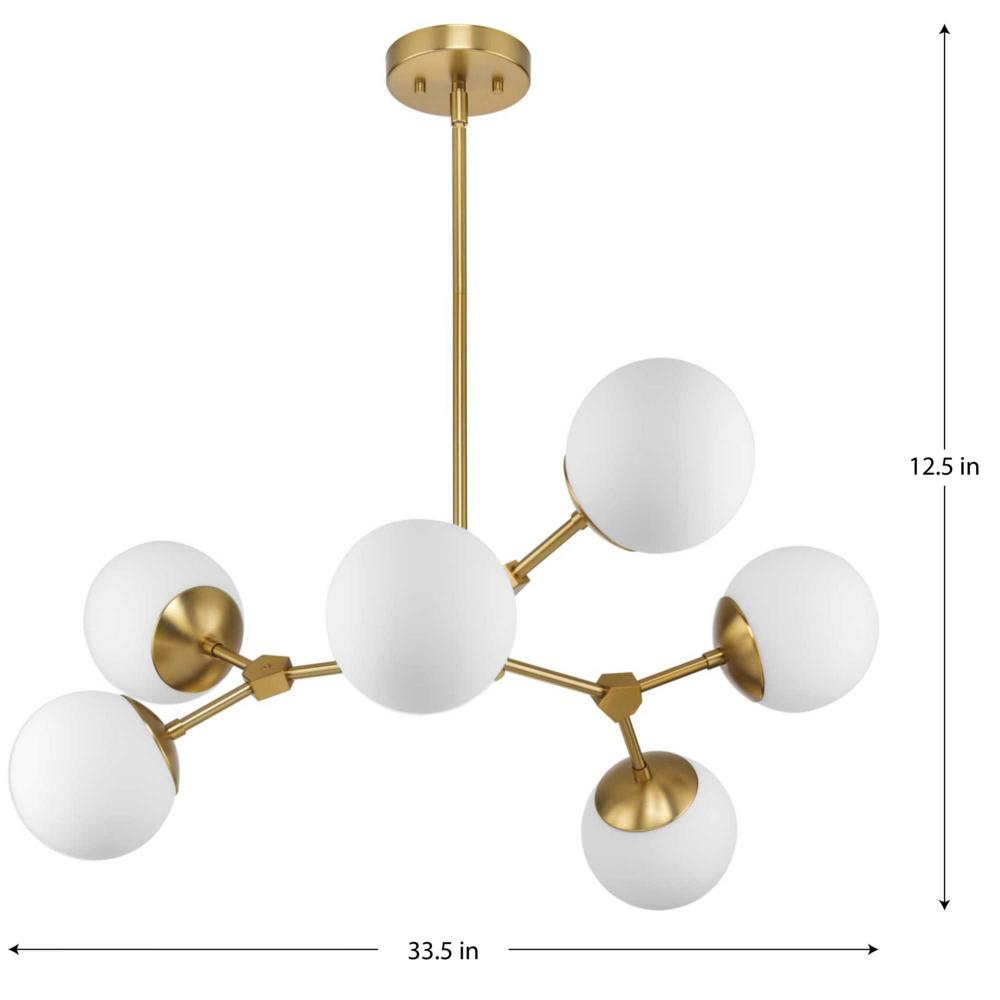Modern and organic inspirations elegantly meld together in Haas. A bold linear frame branches out to embrace smoothly etched opal glass globes that imbue great rooms, kitchens, and dining rooms with soft illumination, and fits beautifully into mid-century modern and contemporary settings. This fixture is part of the Progress Lighting Design Series, a lighting collection offering fashionable styles and affordable luxury lighting for the home.