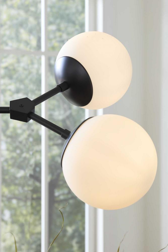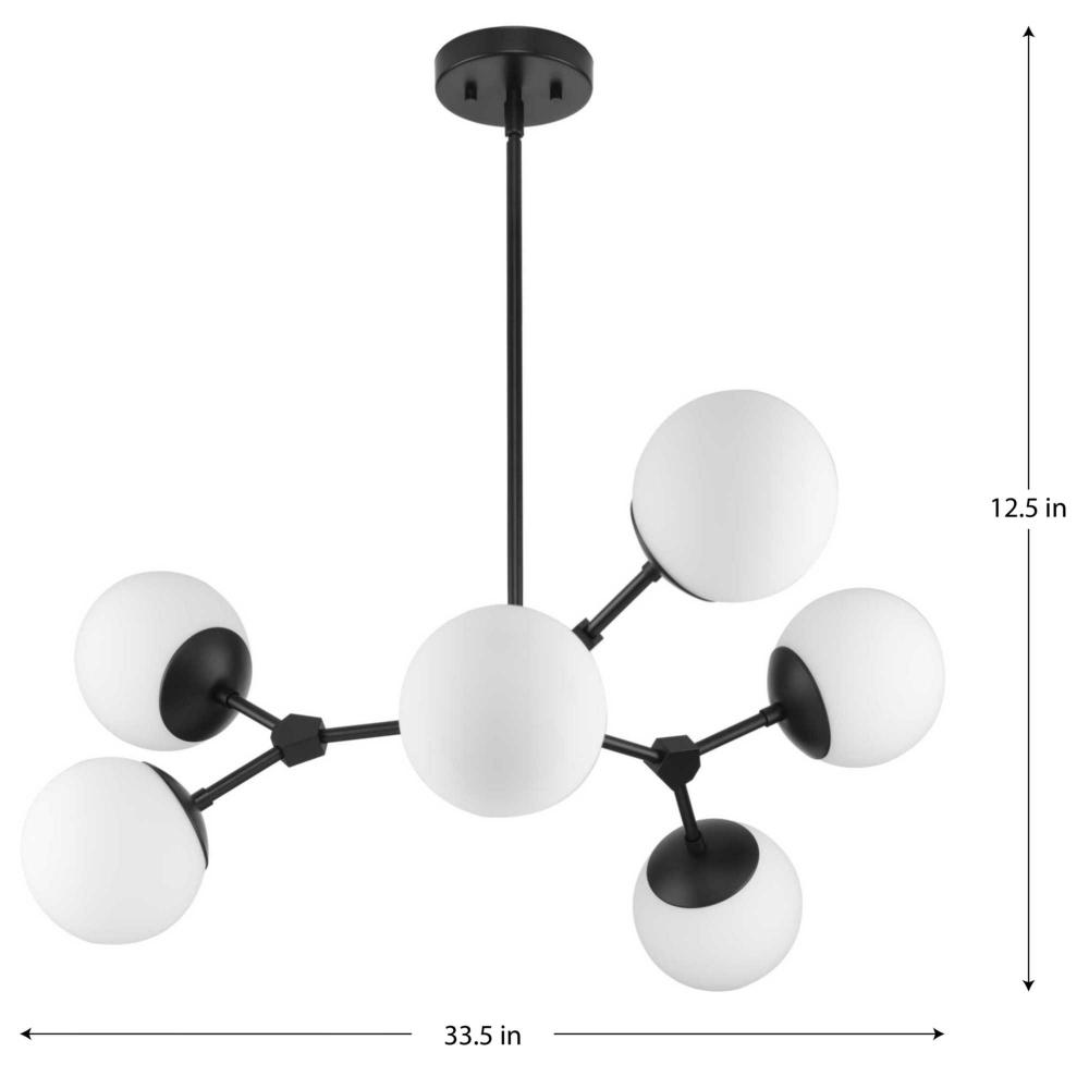 Modern and organic inspirations elegantly meld together in Haas. A bold linear frame branches out to embrace smoothly etched opal glass globes that imbue great rooms, kitchens, and dining rooms with soft illumination, and fits beautifully into mid-century modern and contemporary settings. This fixture is part of the Progress Lighting Design Series, a lighting collection offering fashionable styles and affordable luxury lighting for the home.