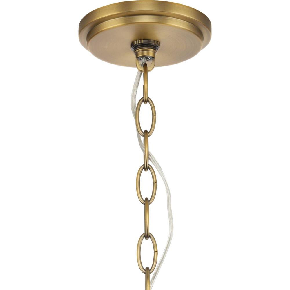 The fixture is coated with a gold-toned, vintage brass finish, accenting contemporary settings with a classic touch