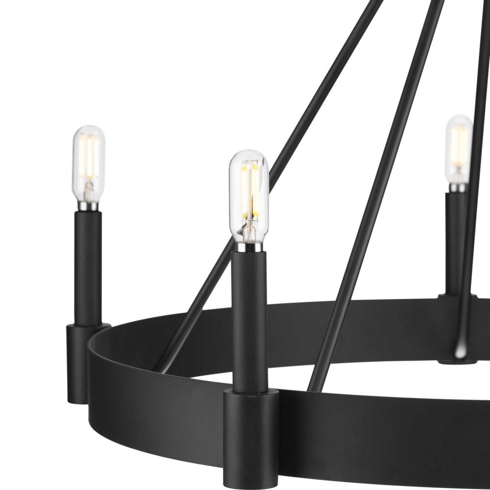 Enhance your interiors with Breckenridge, a rustic yet refined design that presents a statement of minimalist style. Stately candles accent a vast circular frame, illuminating foyers, dining rooms and living rooms with an inviting glow. Breckenridge is an elegant addition to modern farmhouse and modern craftsman settings. This fixture is part of the Progress Lighting Design Series, a lighting collection offering fashionable styles and affordable luxury lighting for the home.