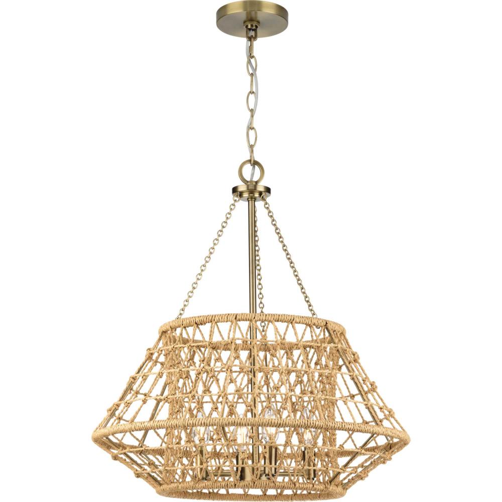 Bring a sophisticated natural presence to your living spaces with Laila. Its artisanal frame is created from hand-knotted jute strands in an intricately woven, double-cage design that creates a delightful interplay of shadows and inviting ambient light to bedrooms, living rooms and dining rooms in global and coastal settings. This fixture is part of the Progress Lighting Design Series, a lighting collection offering fashionable styles and affordable luxury lighting for the home.