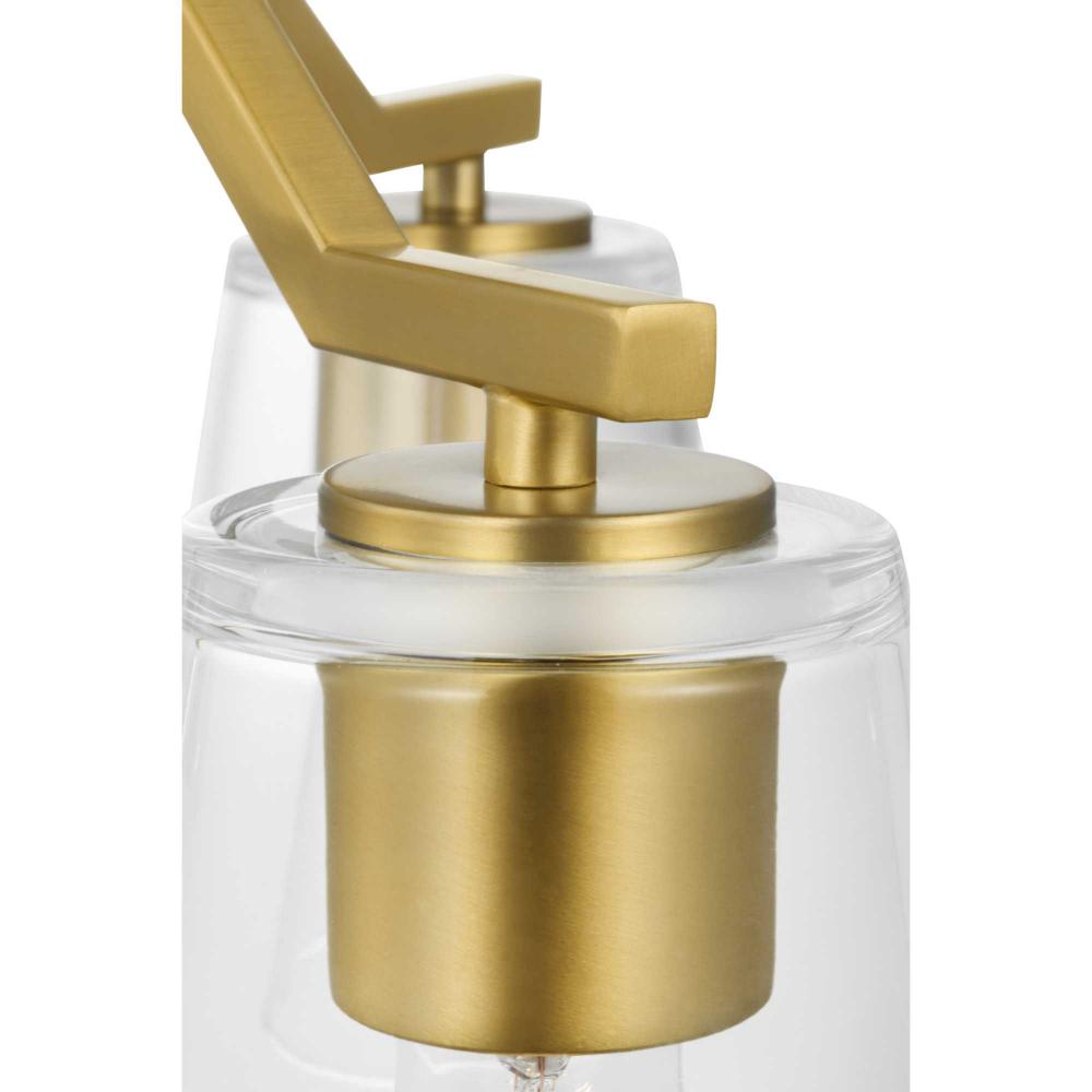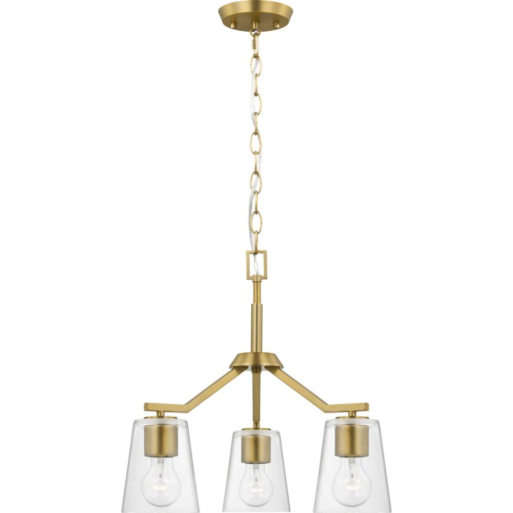 Elegantly extended, the Vertex convertible chandelier is composed of angular forms to create a bold design that perfectly complements halls, foyers and breakfast nooks in modern interiors. Its distinctive silhouette is coated in a soft brushed gold finish. A clear glass shade offers bright illumination to spaces below. This versatile fixture can be converted to a chandelier using the included 48 inches of chain or installed as a semi-flush mount fixture.