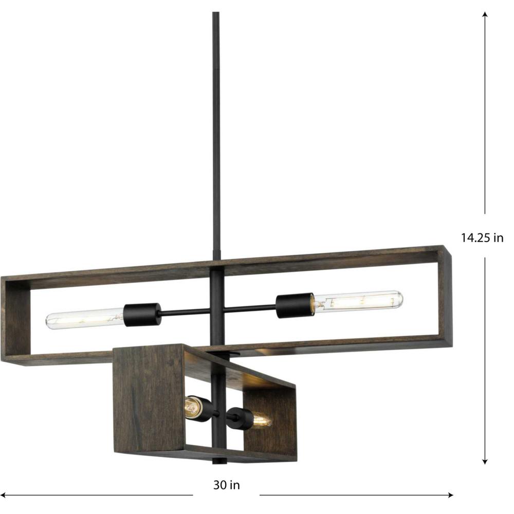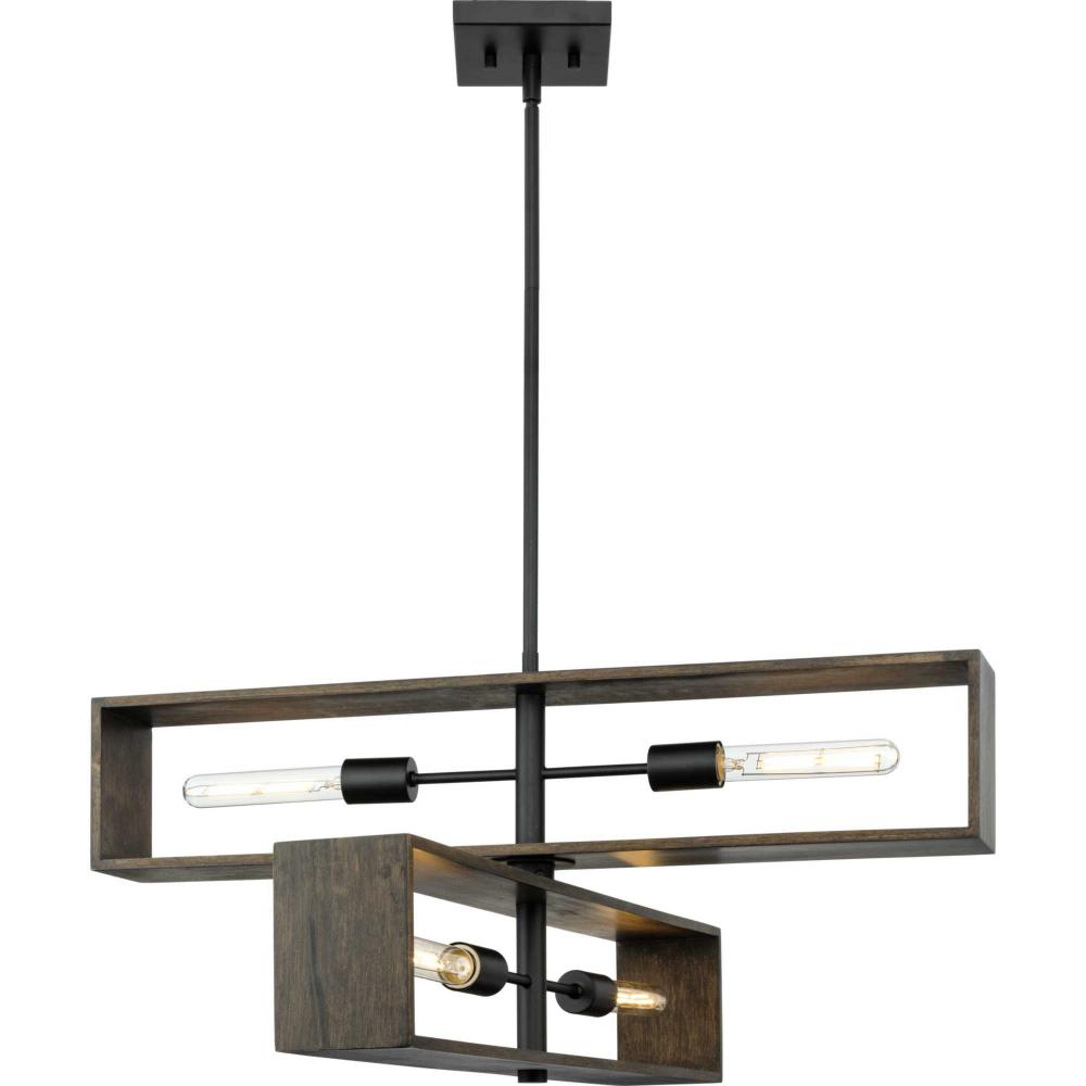 Simple rectangles form the building blocks of the Boundary Chandelier. The light's modern organic design is crafted from natural wood and offers warmth and timeless style to contemporary settings.Two rectangles intersect to form an open frame showcasing light sources that deliver clear illumination to the surrounding space. This light is part of the Progress Lighting Design Series, a lighting collection offering fashionable styles and affordable luxury lighting for the home.