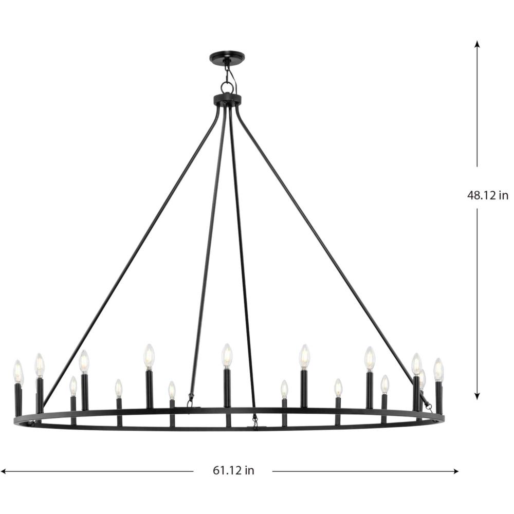 The Gilliam Chandelier delivers an ethereal quality expressed by its slim circular silhouette finished in crisp Matte Black, yet makes a statement with its impressive scale. Simply elegant in design, it creates an airy feeling in any transitional or modern farmhouse setting. It provides beautiful ambient illumination to halls and foyers, kitchens and great rooms.