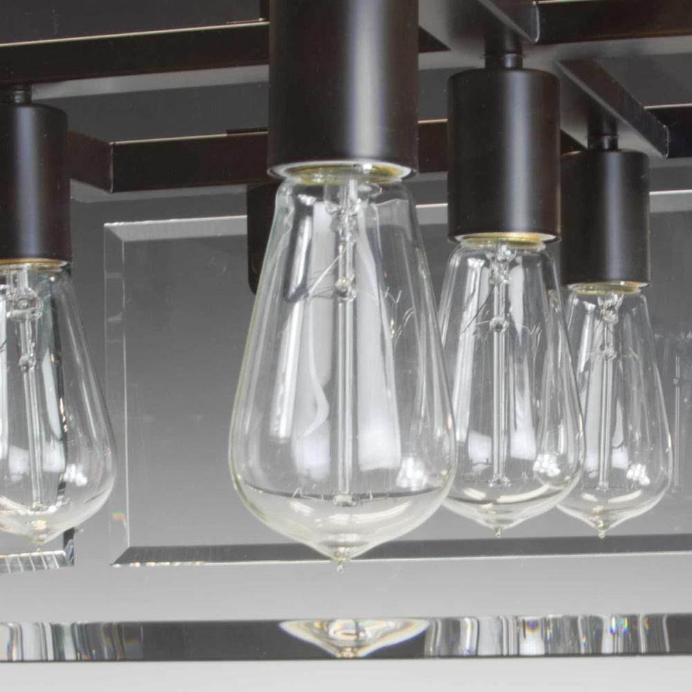 Inspired by modern architecture;Glayse features handsome details for variety of interior design styles;Popular Antique Bronze finish;The frameless unbounded beveled glass creates beautiful light and reflection;Uses five 60-watt max. medium base bulbs inclu