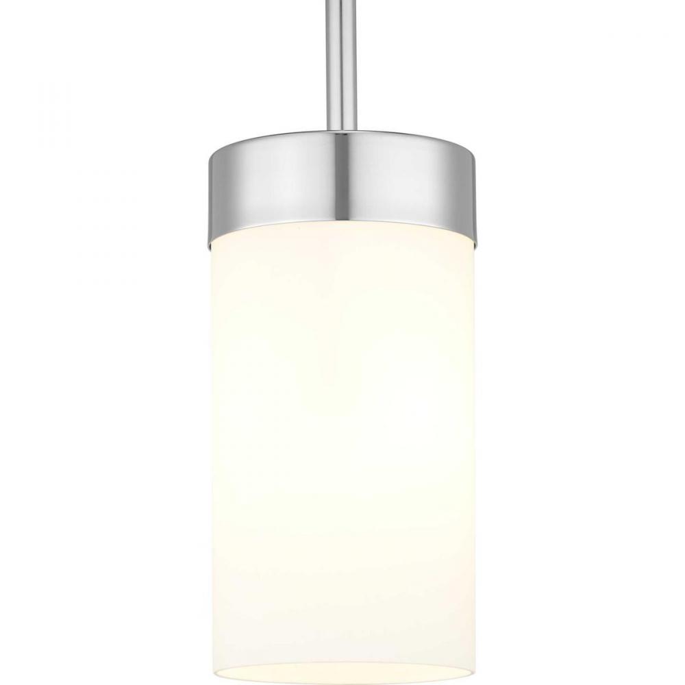 Sleek and unobtrusive one-light mini-pendant, like a chic stud earring, punctuates a small space and adds character when several are grouped together;Etched-glass white shade provides a warm glow;Can be used in lieu of bedside tables or hung in groups over