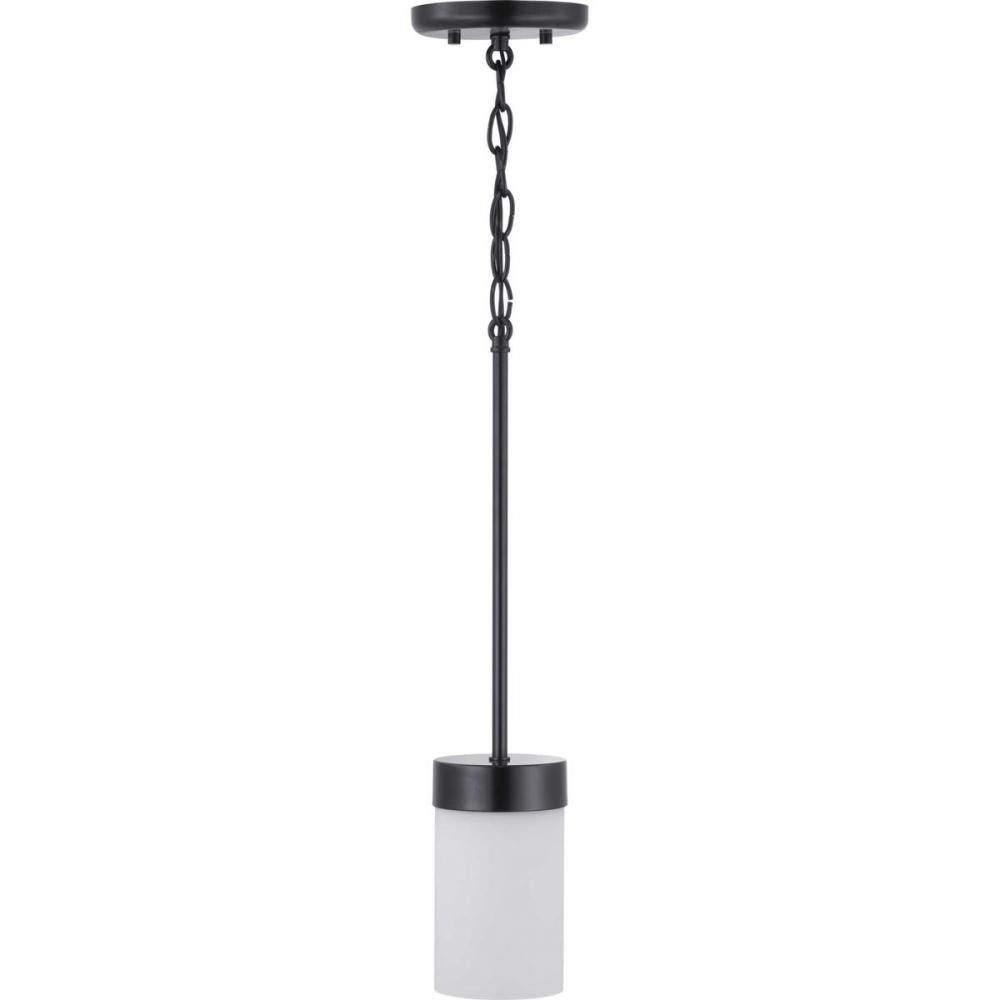 Sleek and unobtrusive one-light mini-pendant, like a chic stud earring, punctuates a small space and adds character when several are grouped together;Etched-glass white shade provides a warm glow;Its space-age styling make it ideal for Modern interiors;Can