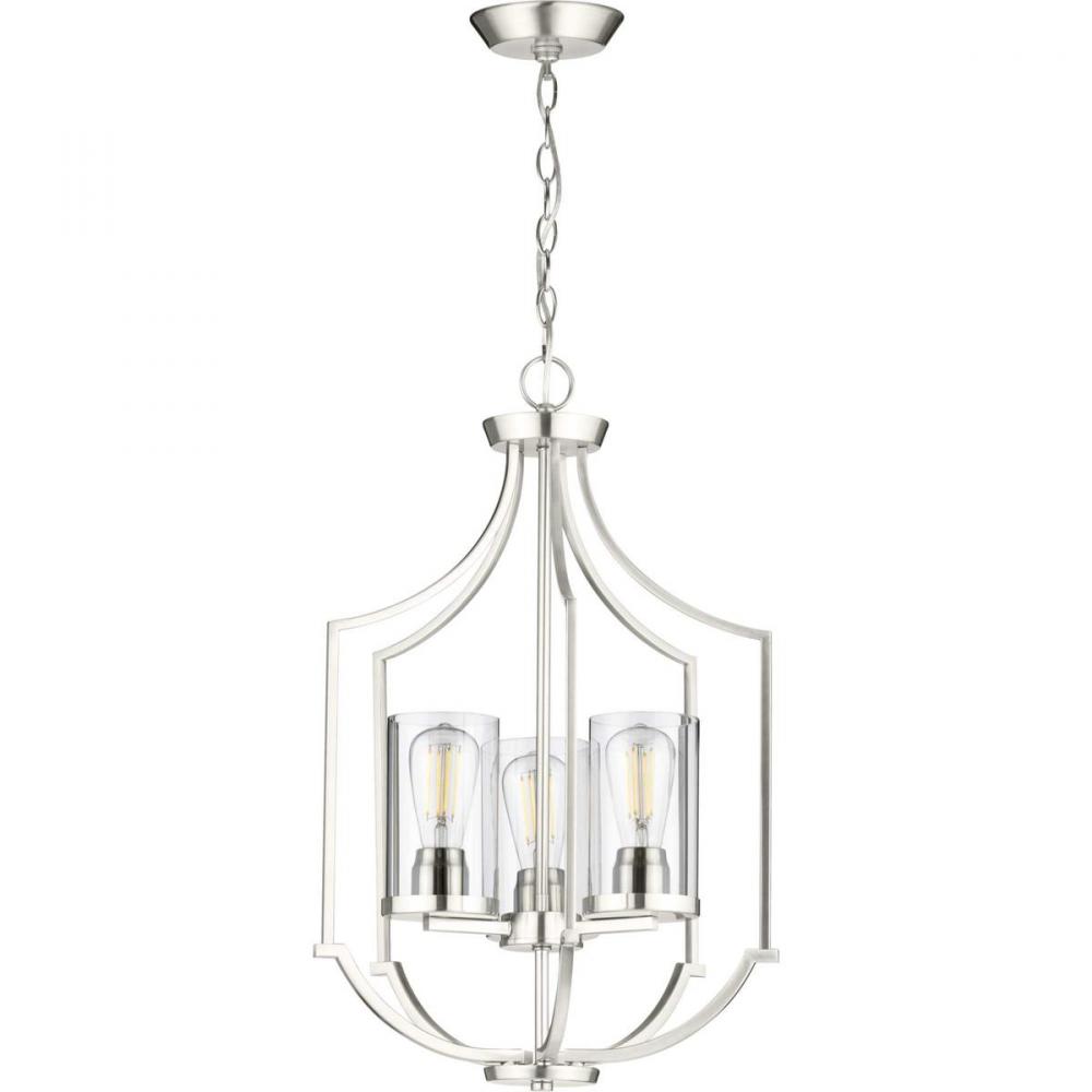 Manifest A Swoon-Worthy Lighting Experience With The Stunning Blend Of The Modern And Traditional Styles In This One-Of-A-Kind Lassiter Collection Three-Light Brushed Nickel Foyer. Square Tubing With Clean, Sharp Angles Is Coated In A Beautiful Brushed Nickel Finish That Demands Your Attention. Striking Vintage Light Sockets Boast Their Bold Yet Simple Demeanor As They Hold Clear Glass Shades To Complete This Statement-Making Light Fixture.