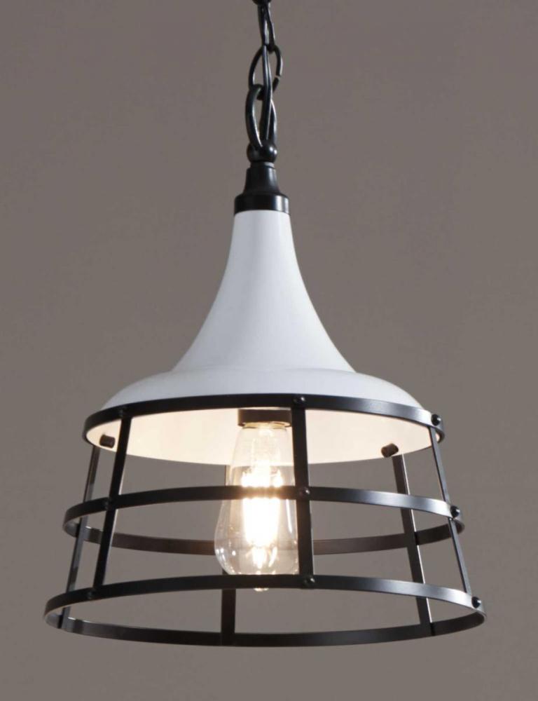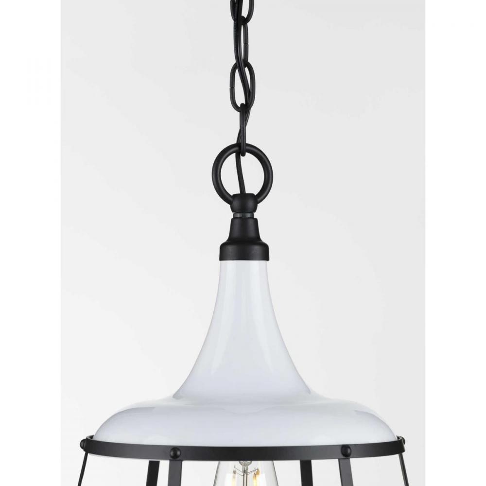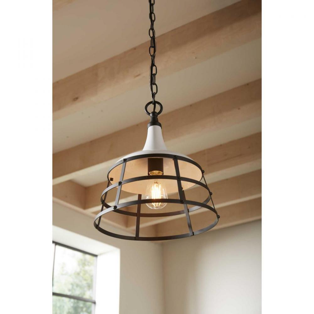 Select A Light Fixture That Is Gushing With Rustic Farmhouse Charm With The Bastille Collection One-Light White Mini-Pendant. A Country Basket Shade Is Coated In A Black Farmhouse-Inspired Finish. A Metal Covering Coated In A Crisp White Finish Contrasts With The Black Basket Shade As It Holds The Light Source In Place.