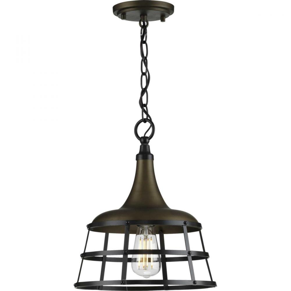 Select A Light Fixture That Is Gushing With Rustic Farmhouse Charm With The Bastille Collection One-Light Aged Brass Mini-Pendant. A Country Basket Shade Is Coated In A Black Farmhouse-Inspired Finish. A Metal Covering Coated In A Handsome Antique Bronze Finish Contrasts With The Black Basket Shade As It Holds The Light Source In Place.