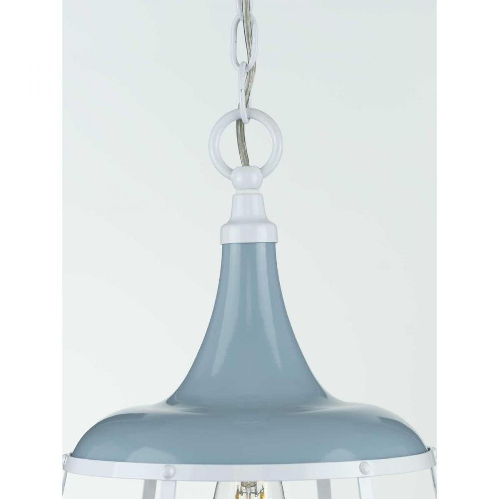 Select A Light Fixture That Is Gushing With Rustic Farmhouse Charm With The Bastille Collection One-Light Coastal Blue Mini-Pendant. A Country Basket Shade Is Coated In A Gloss White Finish. A Metal Covering Coated In A Seaside-Inspired Coastal Blue Finish Contrasts With The Gloss White Shade As It Holds The Light Source In Place.