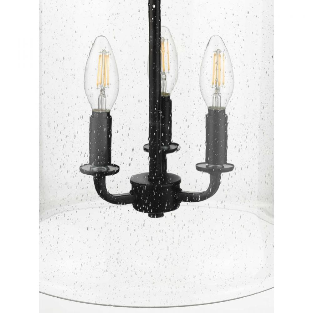 Immerse yourself in a home atmosphere primed for relaxation and inspired thinking with the beautiful craftsmanship of this pendant. Savor this fresh take on a classic light choice as your gaze traces a sleek stem that extends down from a round ceiling plate to a beautiful black light base. A lightly seeded glass shade adds an unexpected, but welcomed dash of modern personality to this clean, traditional design.