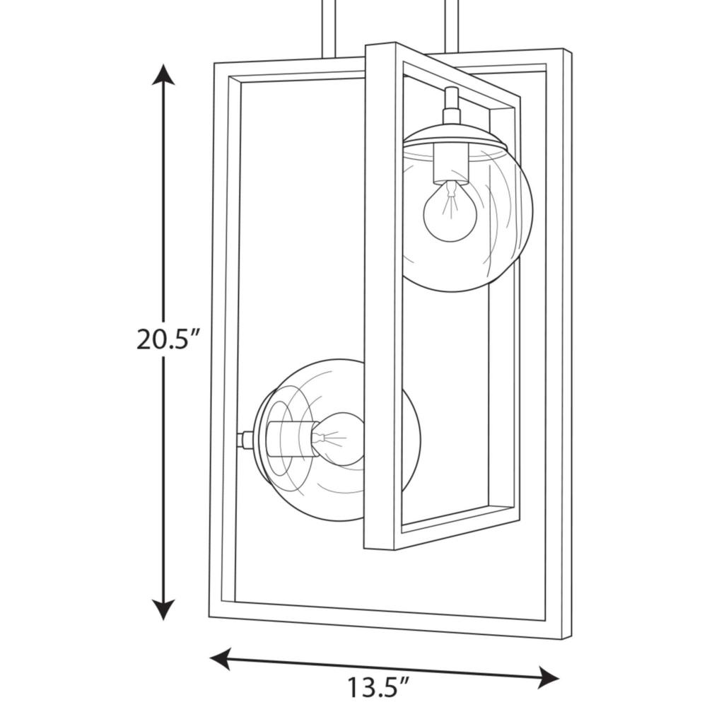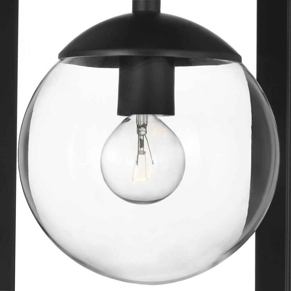 Clear, globe shades soften and contrast with the frame's sharp corners.;The light fixture features an intricate blend of circular and a one-of-a-kind architectural designs that is both remarkable and enduring.;Extraordinary on the first impression, but