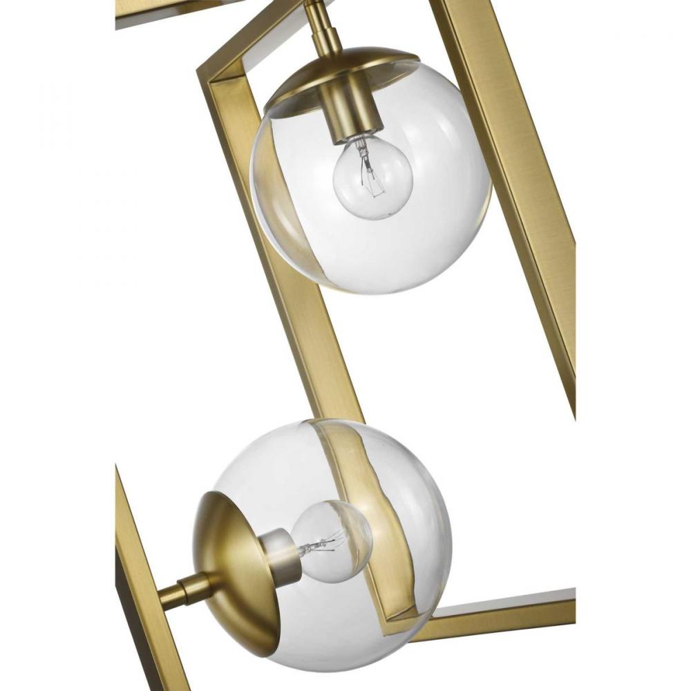 Extraordinary On The First Impression, But Always At Peace With Whatever Setting It Calls Home, This Pendant Is A Statement-Making Lighting Design. The Light Fixture Features An Intricate Blend Of Circular And A One-Of-A-Kind Architectural Designs That Is Both Remarkable And Enduring. Clear, Globe Shades Soften And Contrast With The Frame'S Sharp Corners.