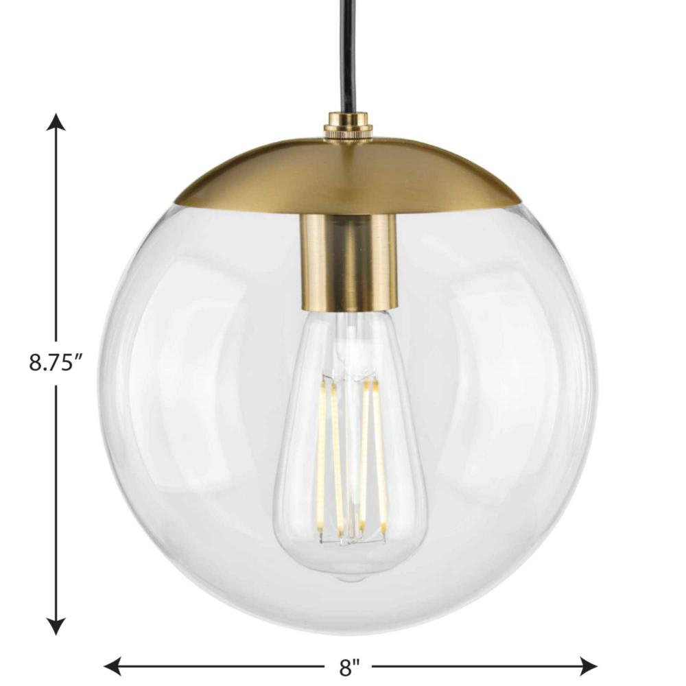 Embrace a statement-making lighting design with the Atwell Collection 1-Light Glass Globe Brushed Bronze Modern Pendant Light. A light source glows from within a clear glass globe shade that fosters a soft and enduring design. The metal cap and light base are coated in a beautiful brushed bronze finish that accentuates the hanging light's modern aesthetic.