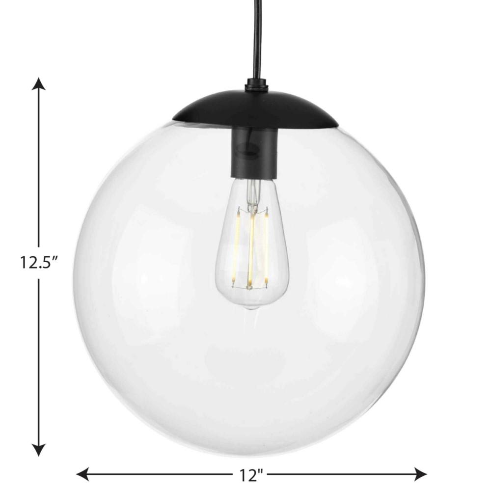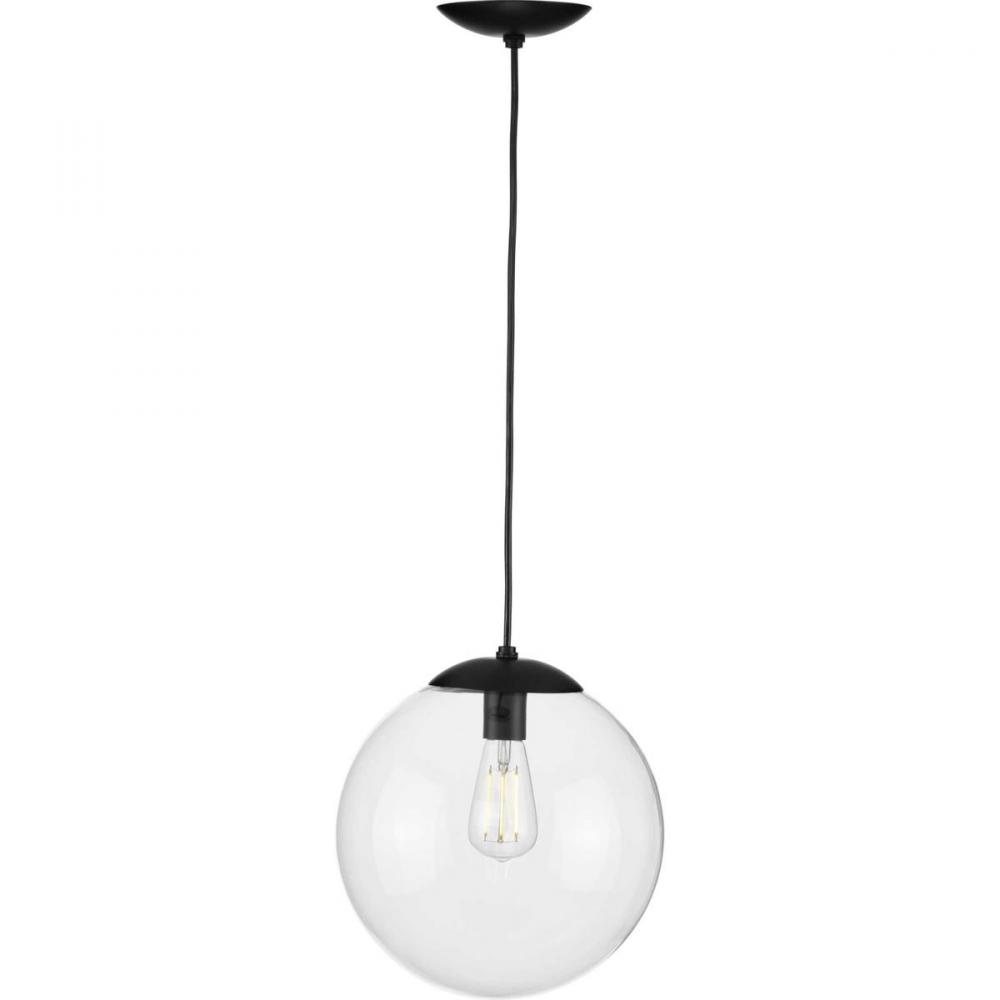 A light source glows from within a clear glass globe shade that fosters a soft and ending design. The metal cap and light base are coated in a beautiful matte black finish that accentuates the hanging light's modern aesthetic.