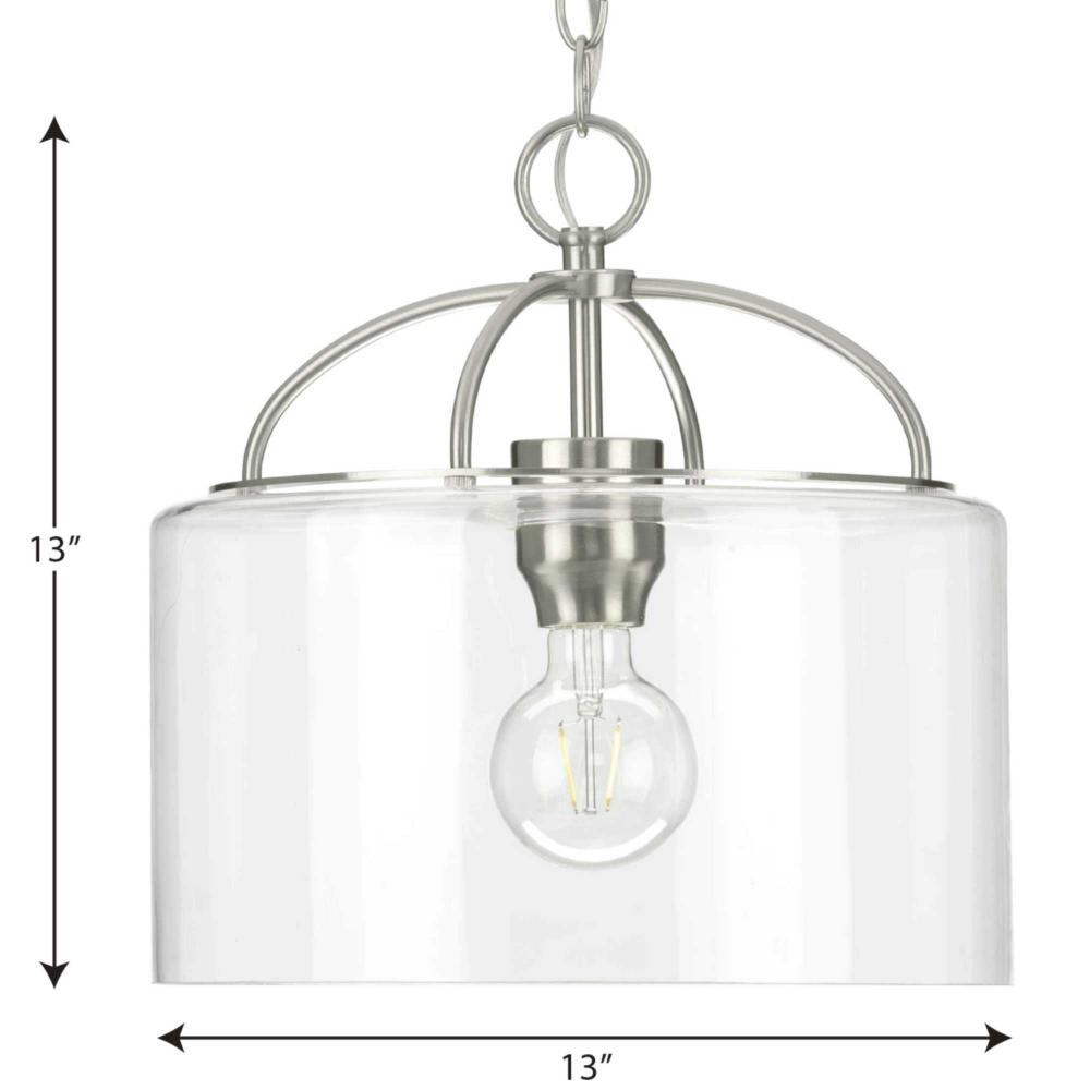 Application: Complement your interiors with the Leyden Collection 1-Light Brushed Nickel Clear Glass Farmhouse Pendant Light ideal for any kitchen island, breakfast nook, foyer, or bar.;Styles: Perfect for farmhouse, transitional, and coastal style setting