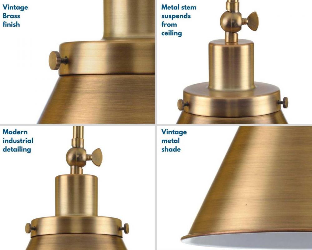 Application: Embrace stylish simplicity with the Hinton Collection 1-Light Brass Vintage Hanging Pendant Light is ideal for any foyer, dining room, kitchen, breakfast nook, entryway, living room, or stairway.;Styles: Perfect for farmhouse, transitional, an