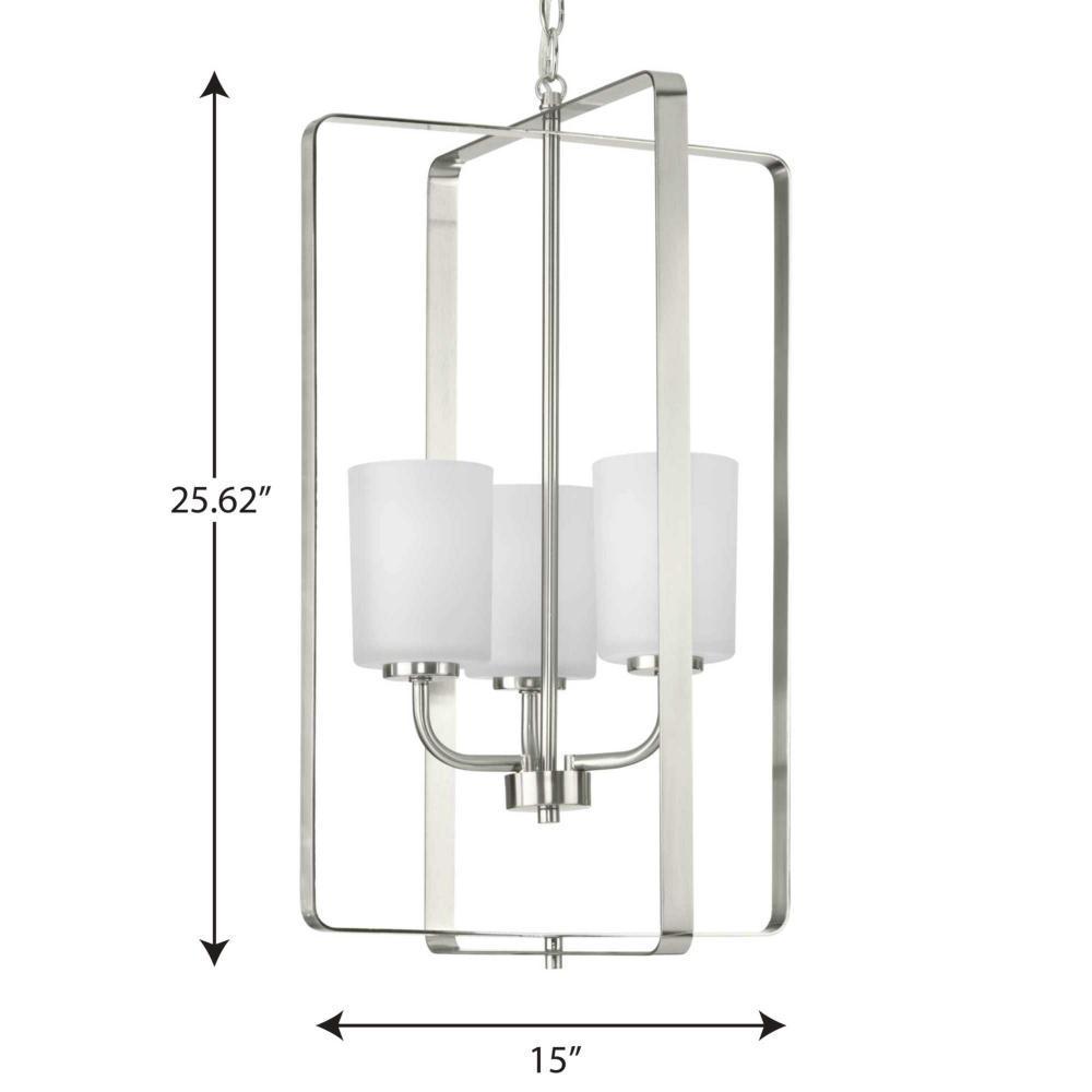 APPLICATION: Distinguish your home with clean modern design with the League Collection Three-Light Brushed Nickel and Etched Glass Contemporary Foyer Chandelier Light ideal for any dining room, kitchen, foyer, entryway, or living room.;STYLES: Perfect for