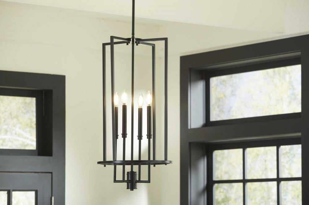 The Elara foyer light features a slender, chic form captured in an elongated frame, making it ideal for foyers, great rooms and kitchens;Its classically modern style is perfect for new traditional and transitional interiors;A classic matte black finish e