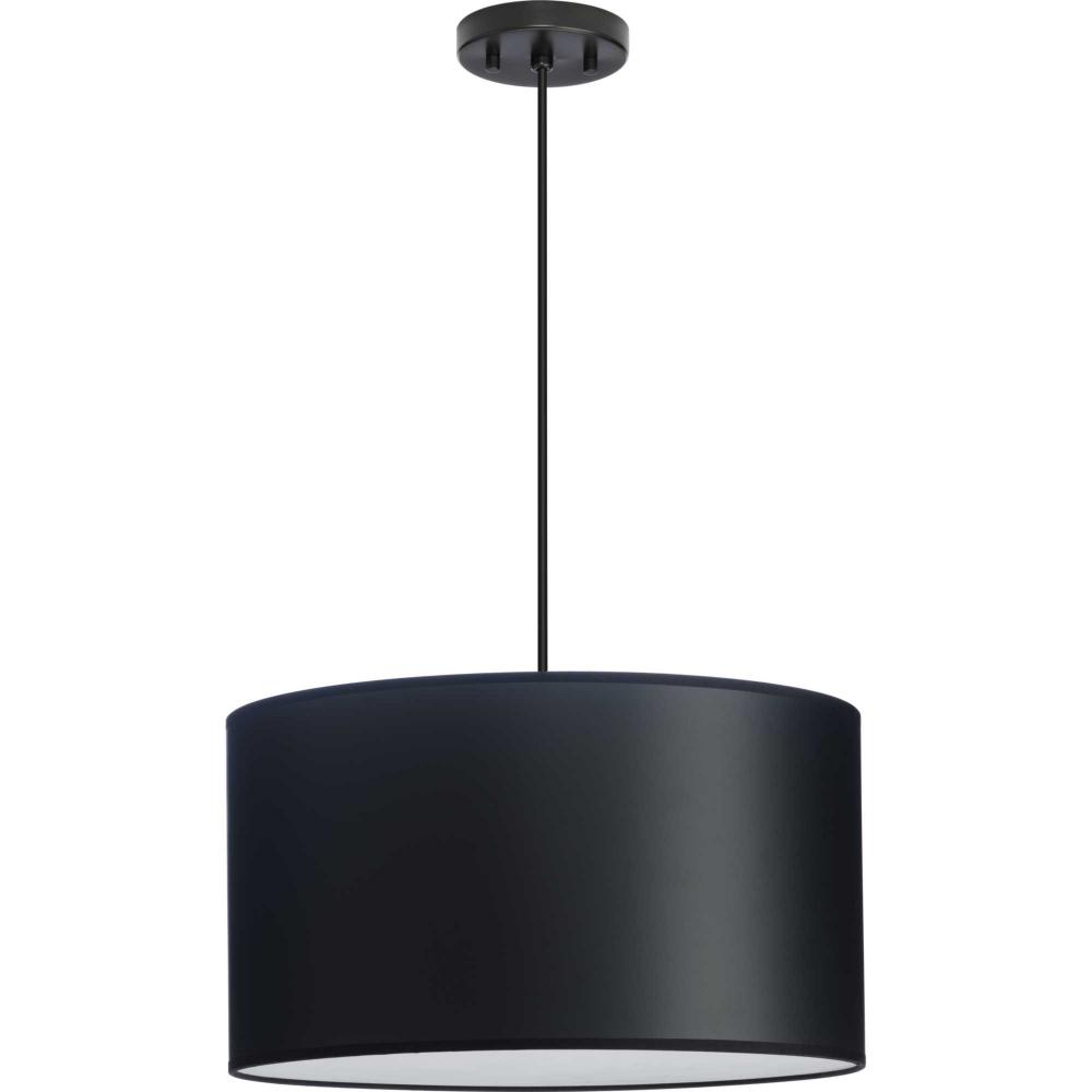 The pendant fits perfectly into kitchens and breakfast nooks with its simple drum shade. Customize to room decor using included trio of canopies finished in brushed nickel, matte black and vintage brass