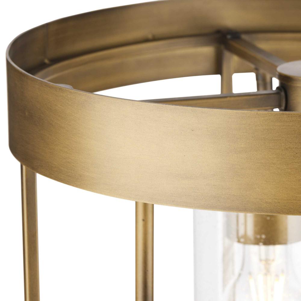The fixture is coated with an lustrous aged bronze finish, enhancing its rustic design