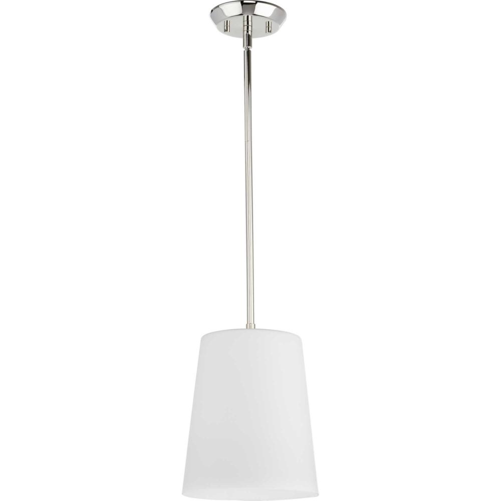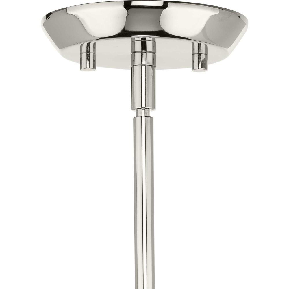 Elegant in its simplicity, the versatile Clarion pendant features an etched glass shade that embraces minimalist modernity and functional task lighting. The glass shade rests at the end of a sleek polished nickel bar that attaches to the ceiling. Each light fixture has a swivel at its base that makes it perfect for installing on flat or angled ceilings.